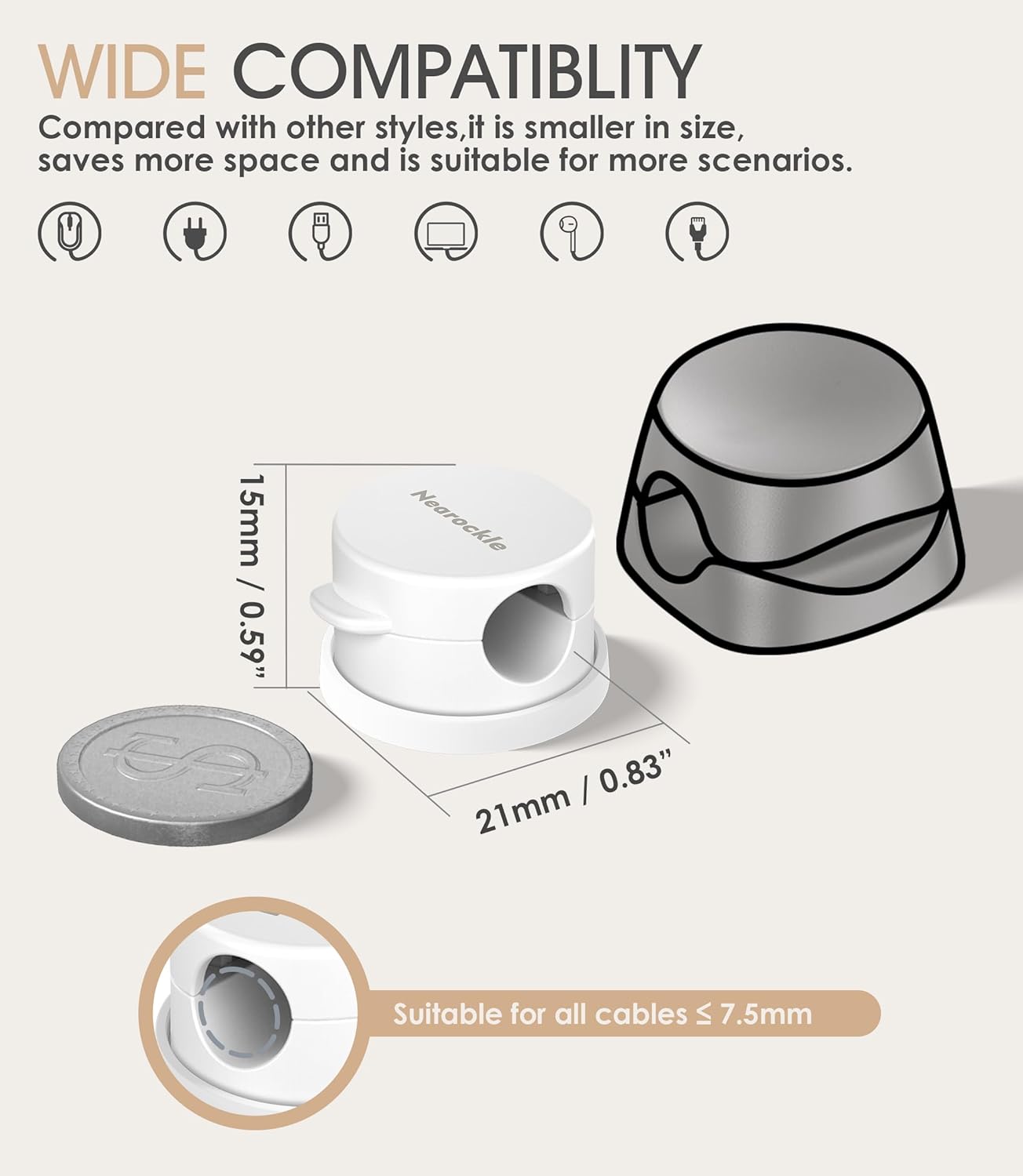 - 【7.5 mm Perfect Cable Slot Diameter】The 0.3inch (7.5mm) diameter can hold most cables, such as mobile phone charging cables, USB cables, HDMI thick cables, computer power cables, etc. Moreover, it can ensure that the charging cable as small as the iPhone original charging cable is fixed and does not fall off, pulled out smoothly