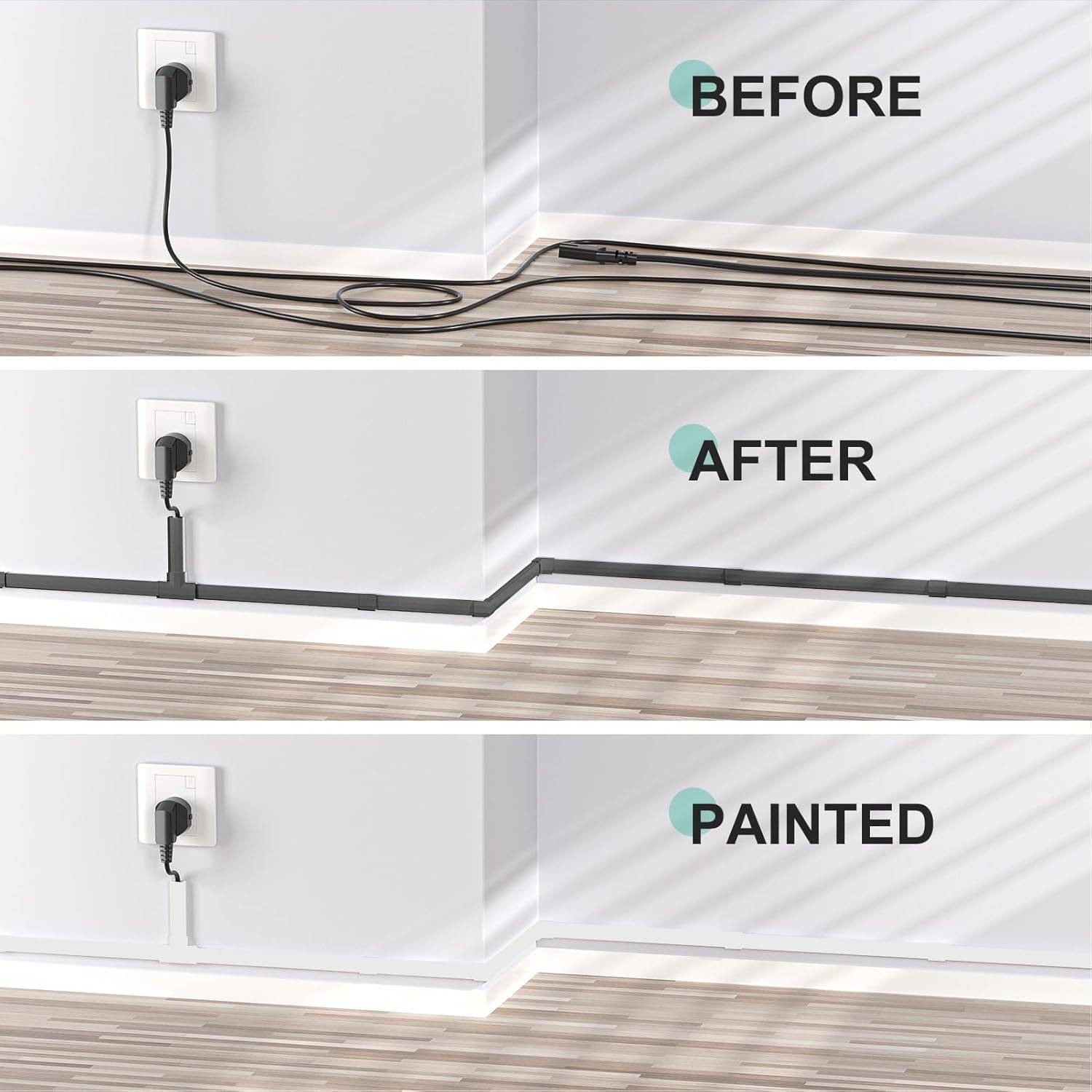 - Painted and Cuttable: Customize your home the way you want! Easily customize the tv cord hider wall to your project whether it’s tidying up wires in the home theater, workstation, living room, or office. Cut the wire hider wire covers for cords on wall to whatever length you need and paint cable raceway to match your room decor however you like