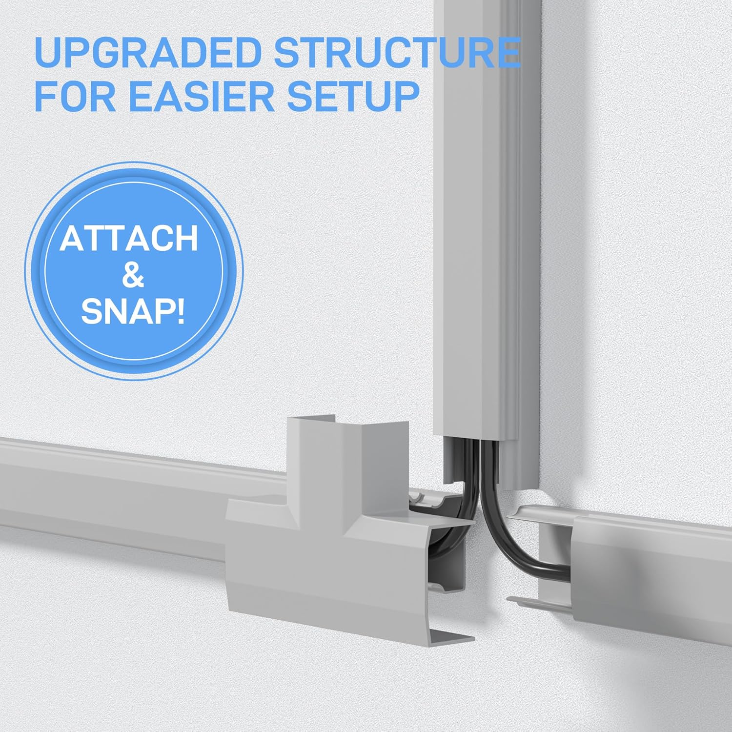 - Attach & Snap Structure for Easier Setup: Delamu cord covers for wires on wall is SUPER EASY to set up. Delamu grey cord hiders feature Attach & Snap design, making installation easier with click-on-and-off technology that makes opening & closing a snap. Organizing the clutter of cables in your home or office will be easier with gray cord hider for wall mount tv