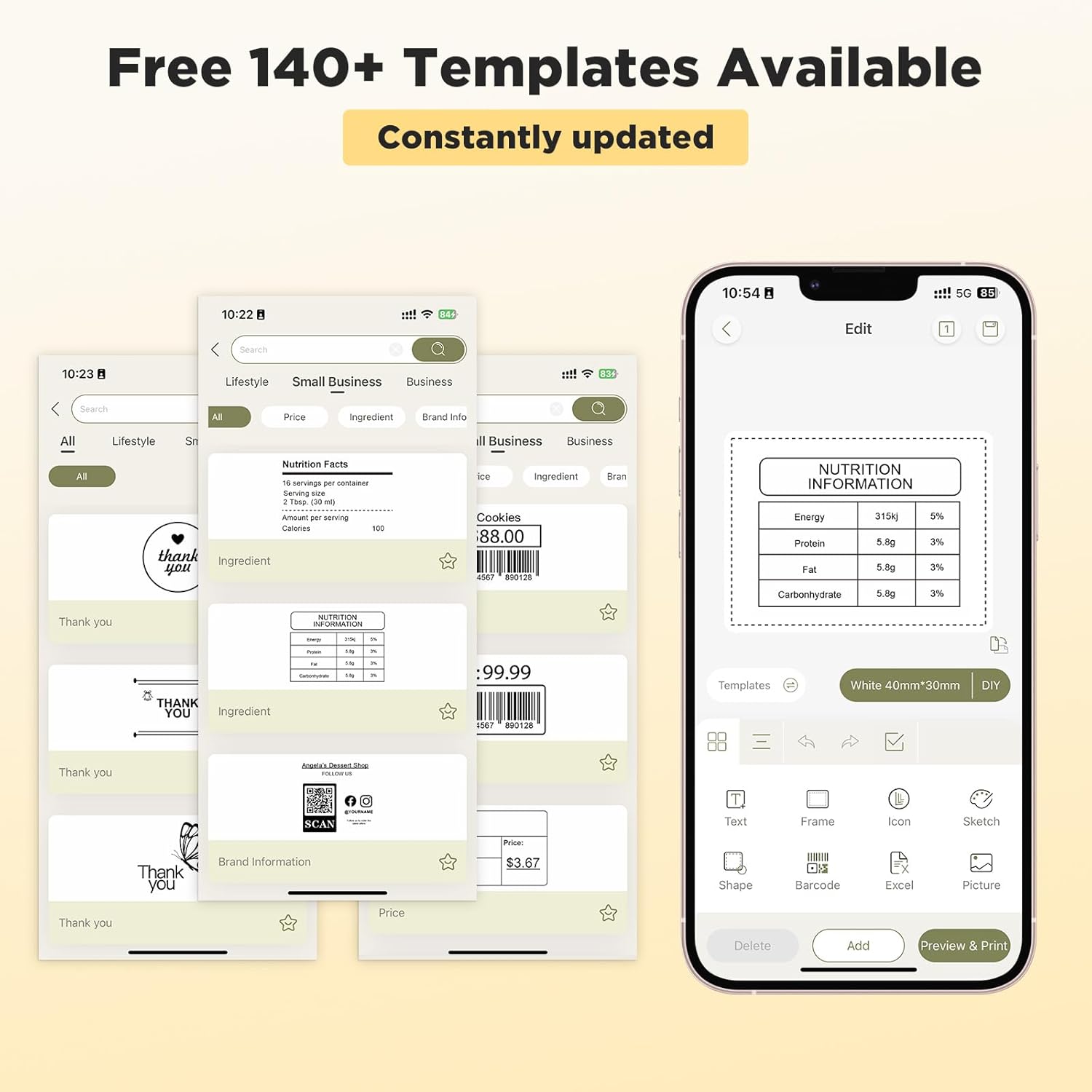 - Easy to Use: The APP is completely free, requires no registration; features auto label size recognition; no ink or toner needed; create labels quickly and easily