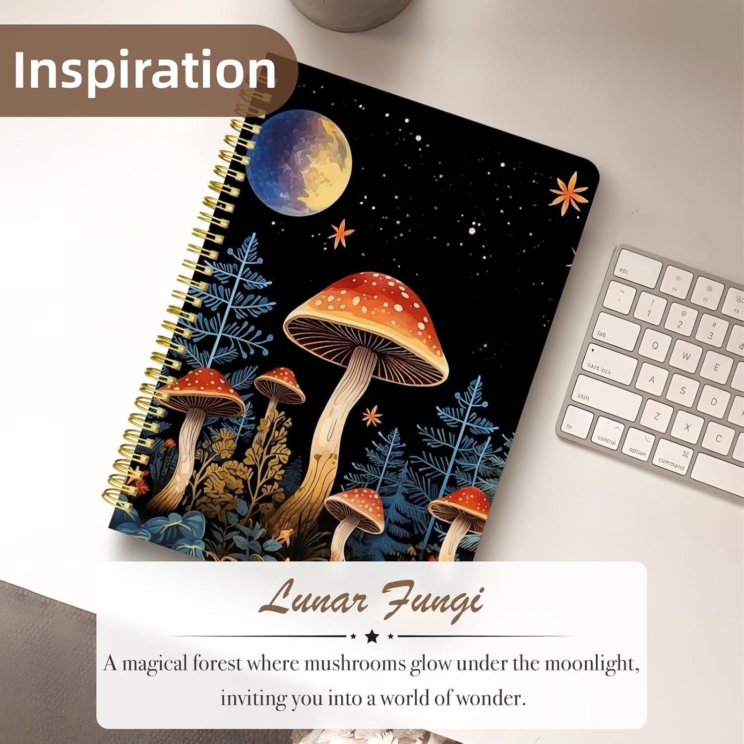 Cute Spiral Notebook journal B5 Aesthetic Pretty Design for Women Girls Kawaii with Pocket, 10 x 7.2 inch, Lined, Moon Mushroom