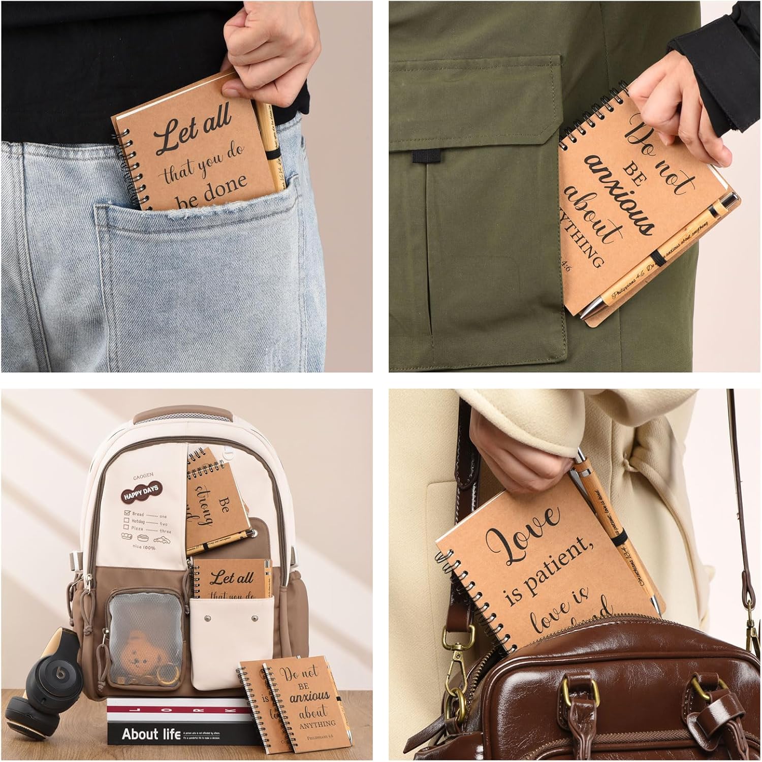 - Deluxe Scripture Notebook & Pen Set – Includes 30 spiral-bound notebooks and 30 bamboo pens across 5 inspirational Bible verses (6 notebooks and 6 pens per verse). Perfect for group sharing, study events, or bulk gifting.