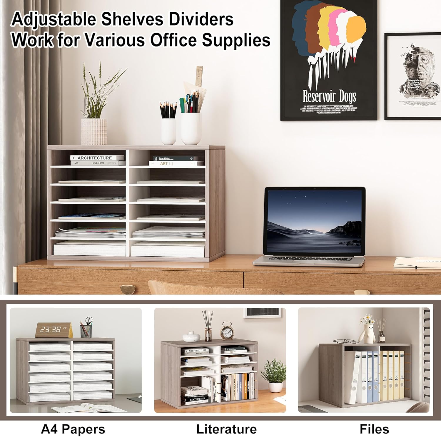 - Large Storage Capacity: Each slot can hold up to 500 A4 paper sheets, with sizes of 8.91W"x12D"x2.32h" each slot. You can also adjust or remove shelves to accommodate taller items. Customize the layout of your storage cabinet to suit your specific needs