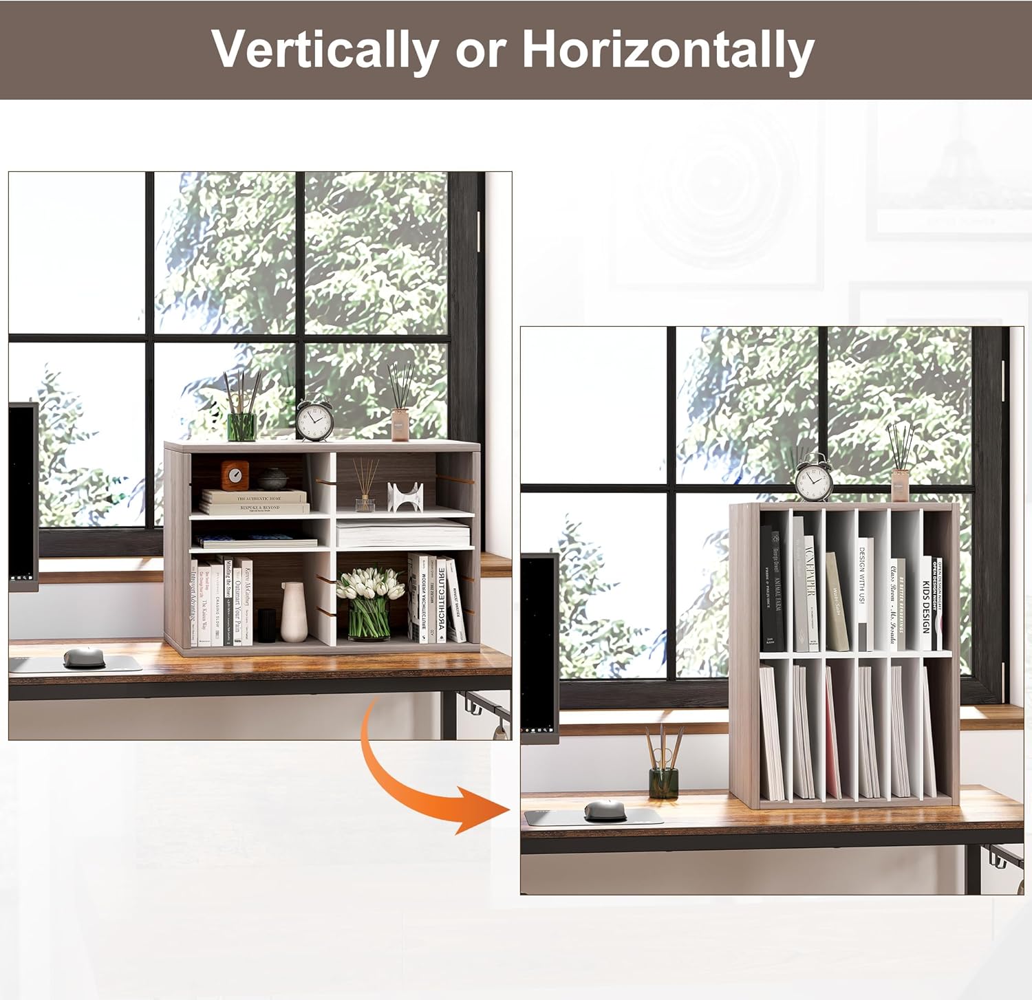 - See at a Glance: Make the most of your space with our Alpeir wood literature organizer. This desk organizer has 12 compartments in total, arranged in 2 rows and 6 columns. You'll have plenty of room to store and tidy up mails, books, documents, magazines, A4 papers, and more. Keep your desktop neat and tidy effortlessly, make everything sees at a glance
