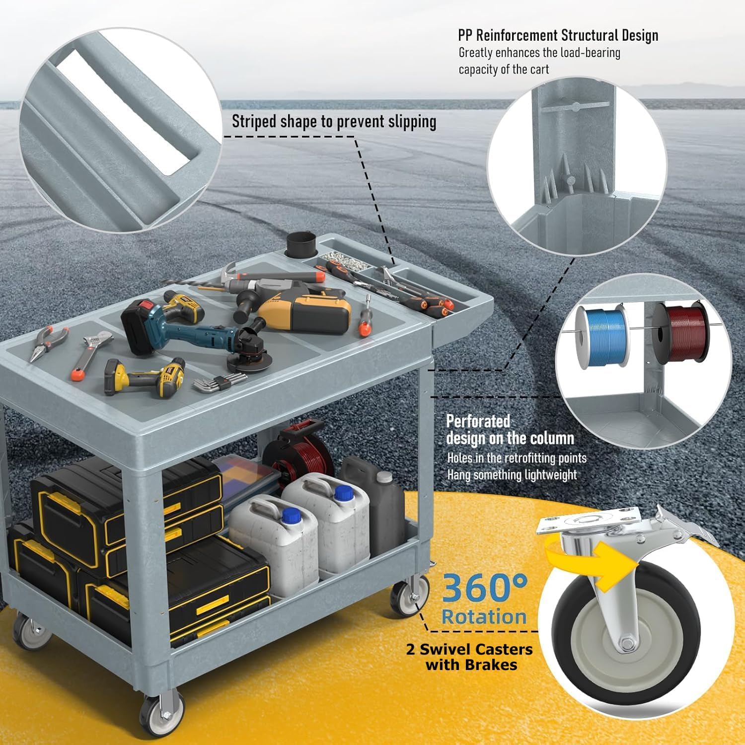 - ✨【HIGH-QUALITY MATERIALS】: This cart is made from high-strength, industrial-grade polypropylene to resist chipping or denting. It is also waterproof and rust-proof and easy to clean, so it is suitable for indoor and outdoor use.