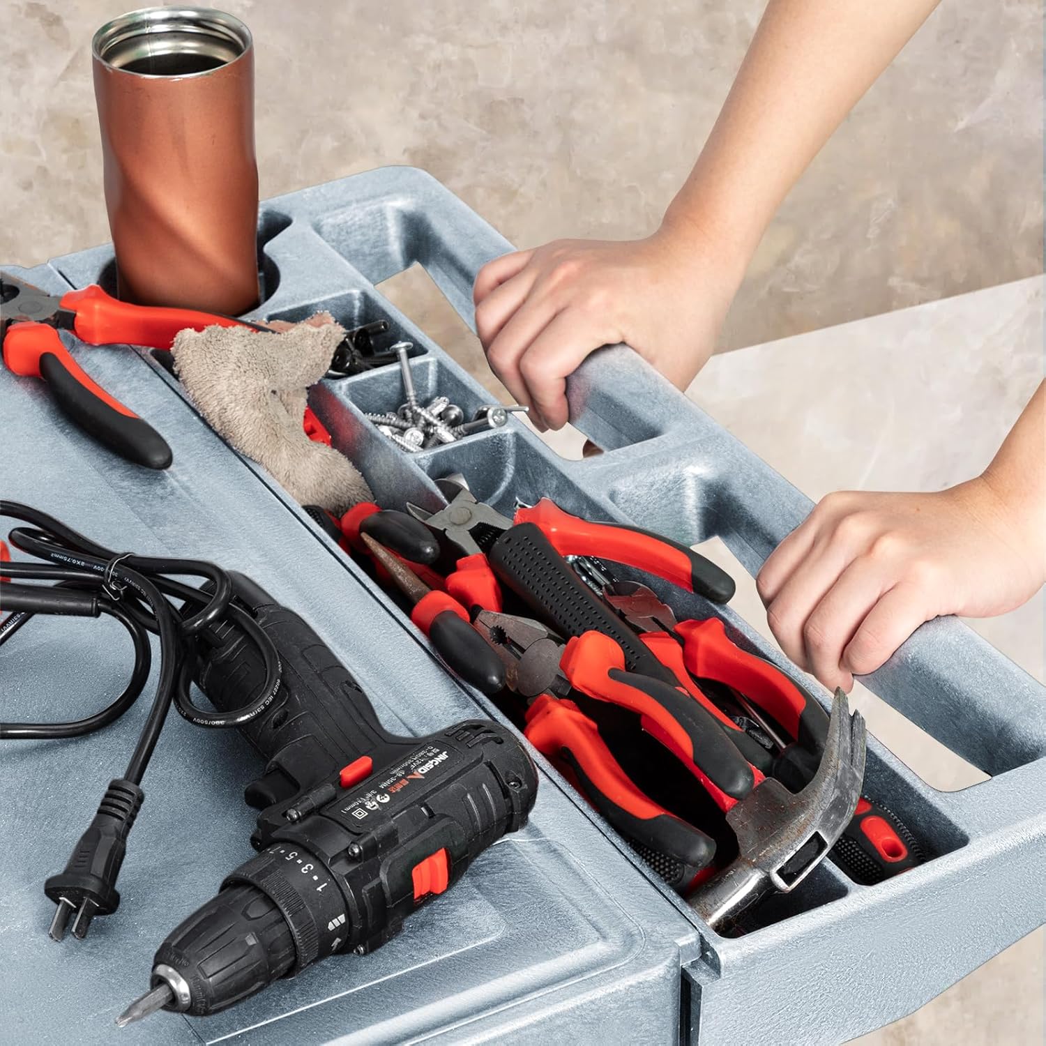 - ✨【HEART-WARMING HANDLE】: Simulating slots for storage compartments, water cups, and bottle holders, making them more easily accessible. The handle features a threaded structure design to prevent slipping during use.