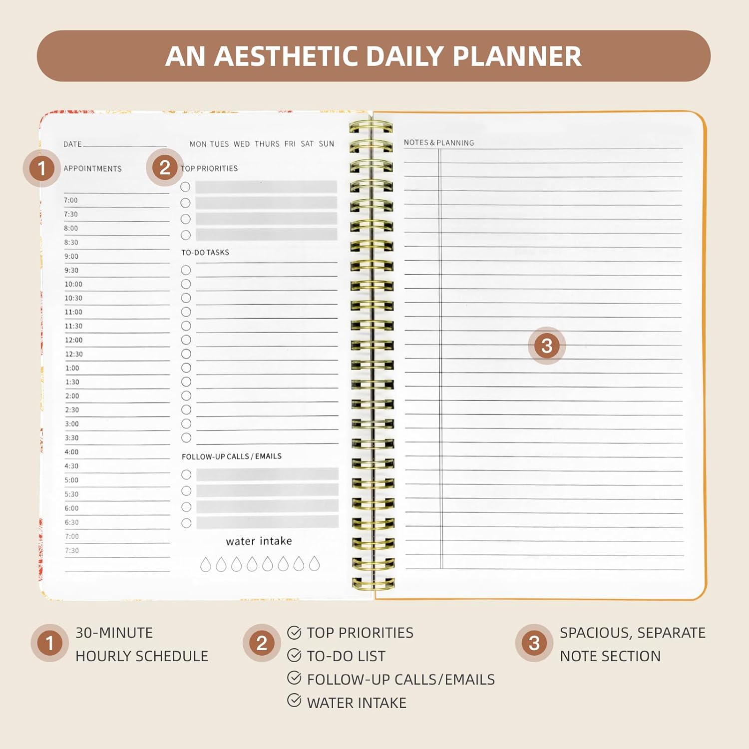 Undated Daily Planner - Spiral Notebook 80 Days One Day Per Page, Hourly Schedule, To-Do List, Notes, Everyday Planning Task, A5 Hardcover Journal Organizer Book Women Cute Aesthetic, Fall