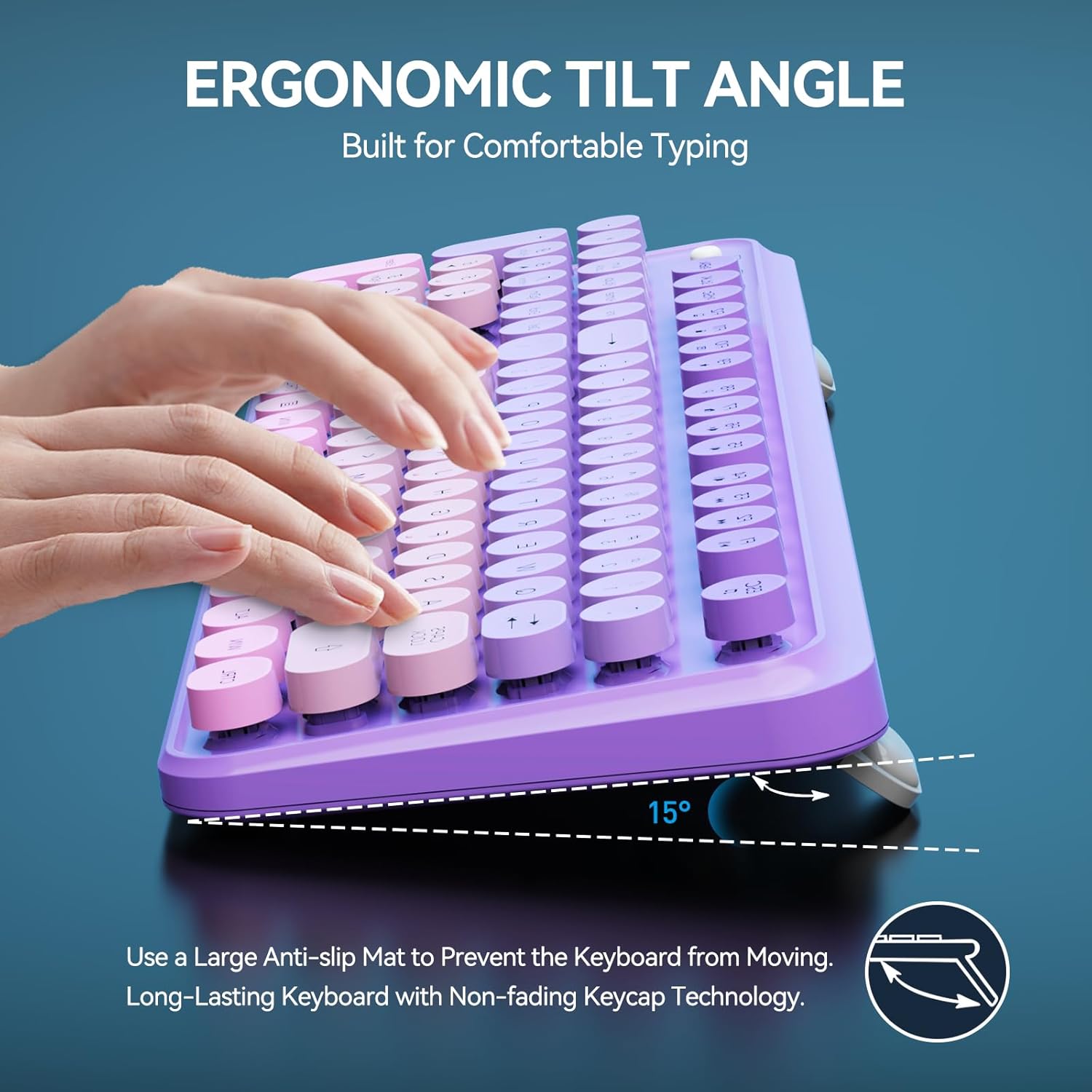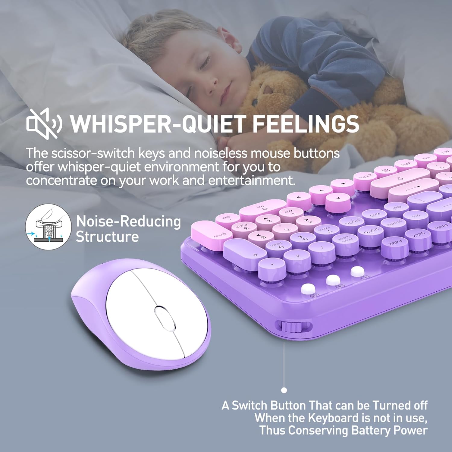 - 【 Wireless Keyboard Mouse Combo】The inspiration for these cute rounded keys comes from vintage typewriters offering you visual enjoyment and a retro feeling to type. With colorful key caps, make you be distinctive in the office and work full of fun.