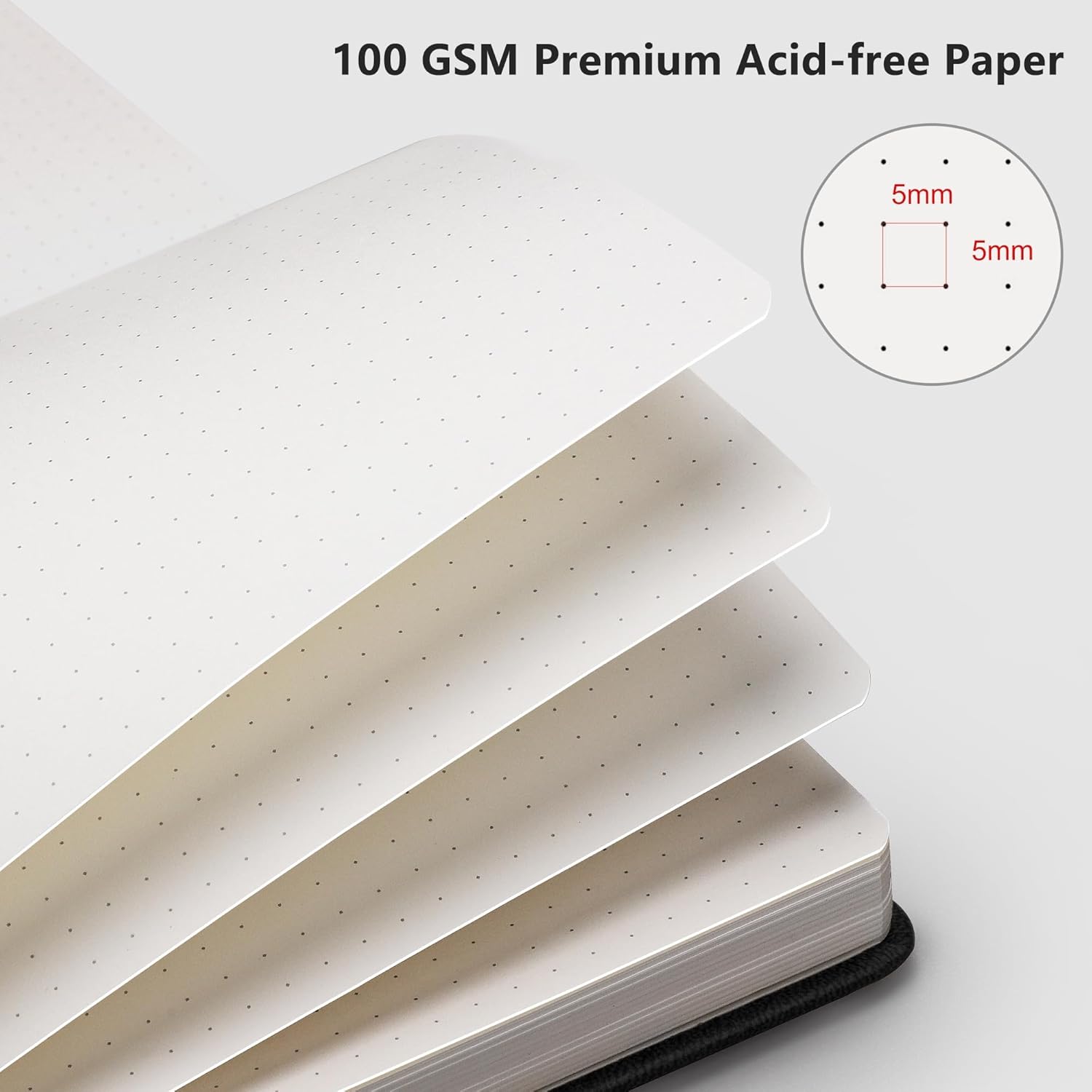 - PREMIUM PAPER: Crafted with time-resistant 100 GSM paper, this dotted journal preserves thoughts flawlessly while resisting ghosting/bleed-through with most pens. Acid-free material ensures long-term preservation, and its smooth surface enhances writing clarity - blending durability and premium performance