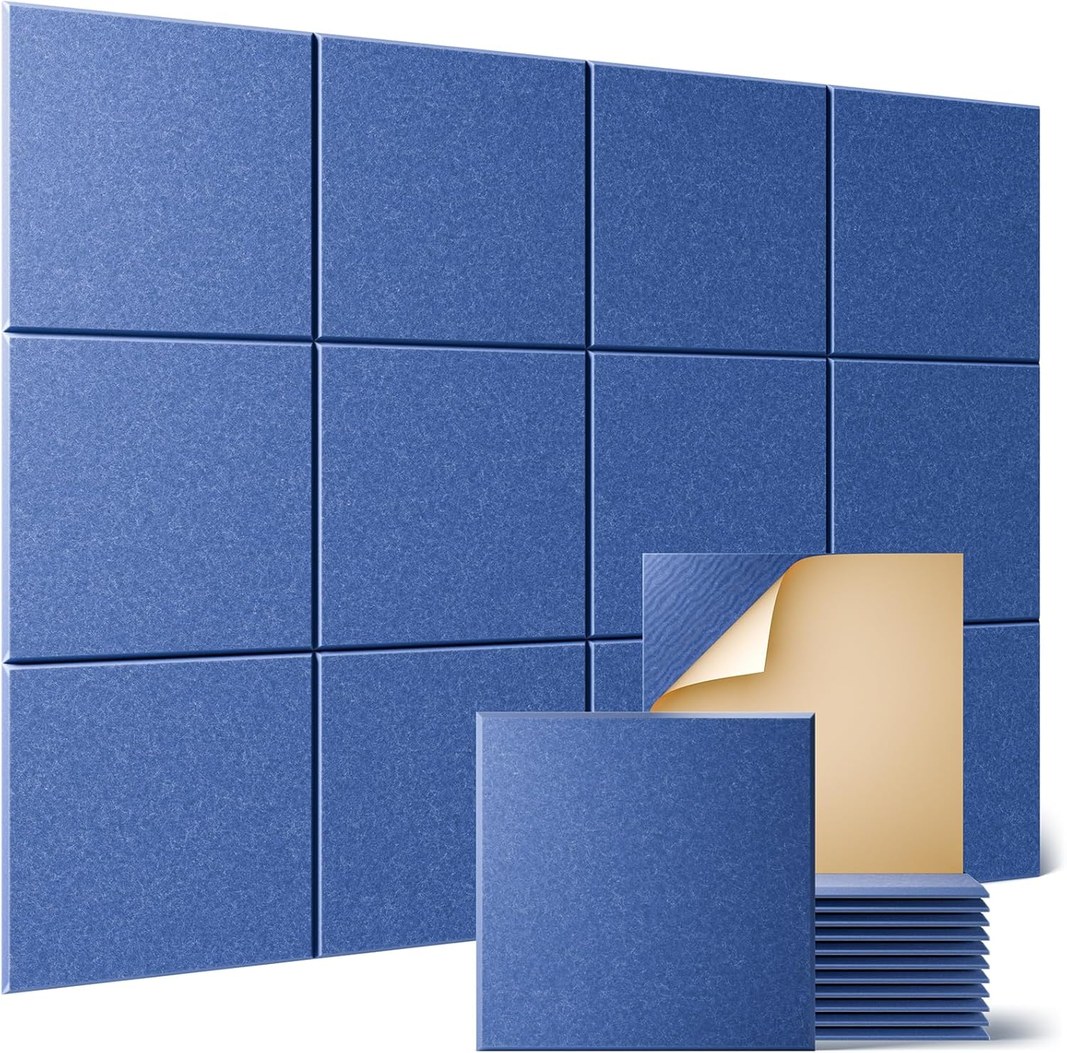 Sonicism 12 Pack Acoustic Wall Panels with Self-Adhesive, 12" X 12" X 0.4" Sound Proof Foam Panels, Decorative Soundproof Wall Panels, Sound Proof Absorbing Tiles for Home & Offices, Cerulean Blue