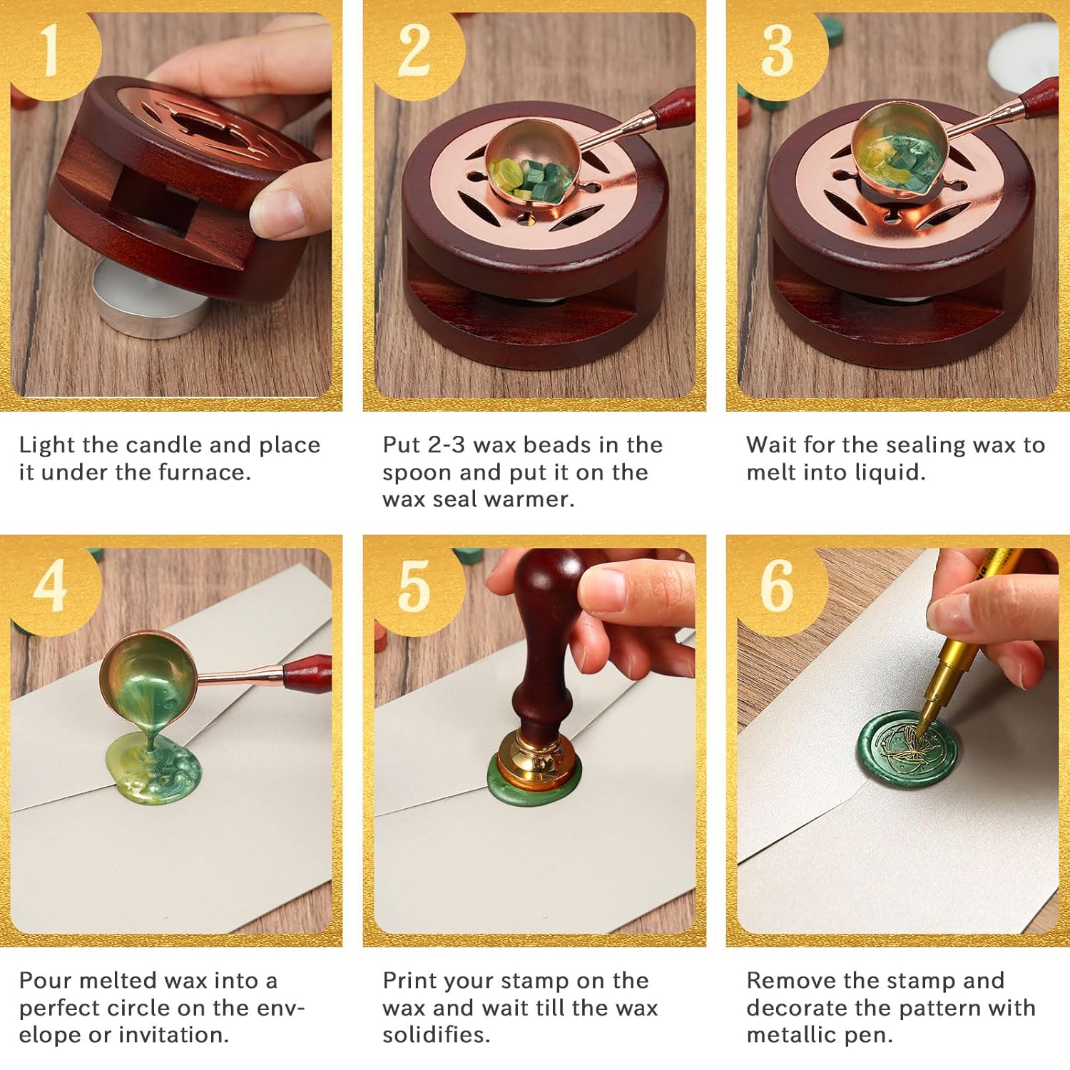 - 💝【Perfect Gift】Comealltime wax stamp seals kit is a creative gift for birthday, Valentine's Day, Mother's Day, Thanksgiving, Christmas, Anniversary and other festivals. It’s a perfect gift set to bring a surprise to your beloved one in a special day. Warm Tips: To get a better sealing experience, please DO NOT melt the wax too long or too hot to avoid the wax beads get bubbles.