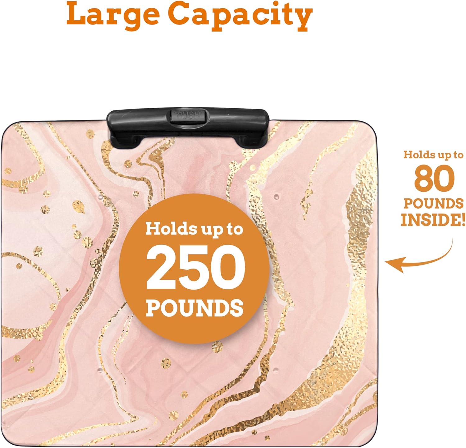 Inspired Living Collapsible Ultra-Slim Pack-N-Roll,2 Wheel Utility Cart w/Lid Used as Seat up to 250 Lbs, Telescopic Handle, Super Strong, for Home,Garden,Shopping,Office,School, Large, Pink Marble