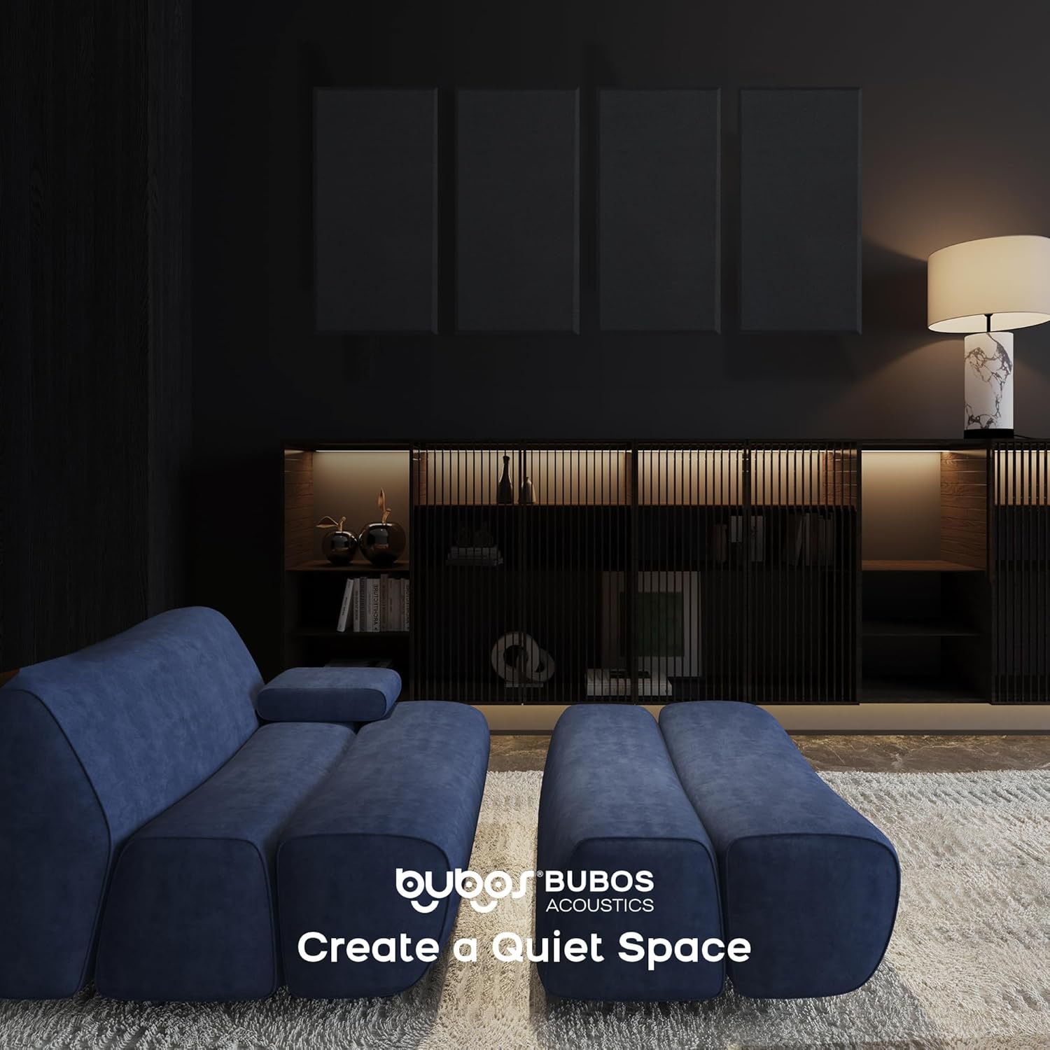BUBOS 4 PCS Fabric Acoustic Panels,23.6''x11.8''x2'' Sound Proof Panels for Walls,Self-adhesive Soundproof Wall Panels for Echo Absorption for Home Studio Office,Standard CavityPro Black