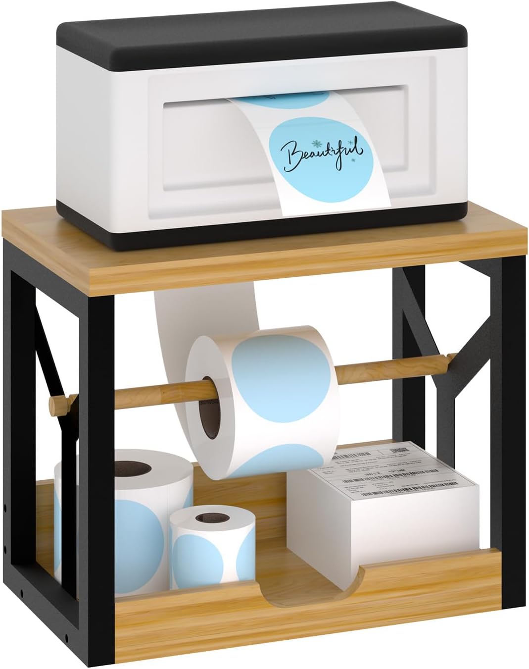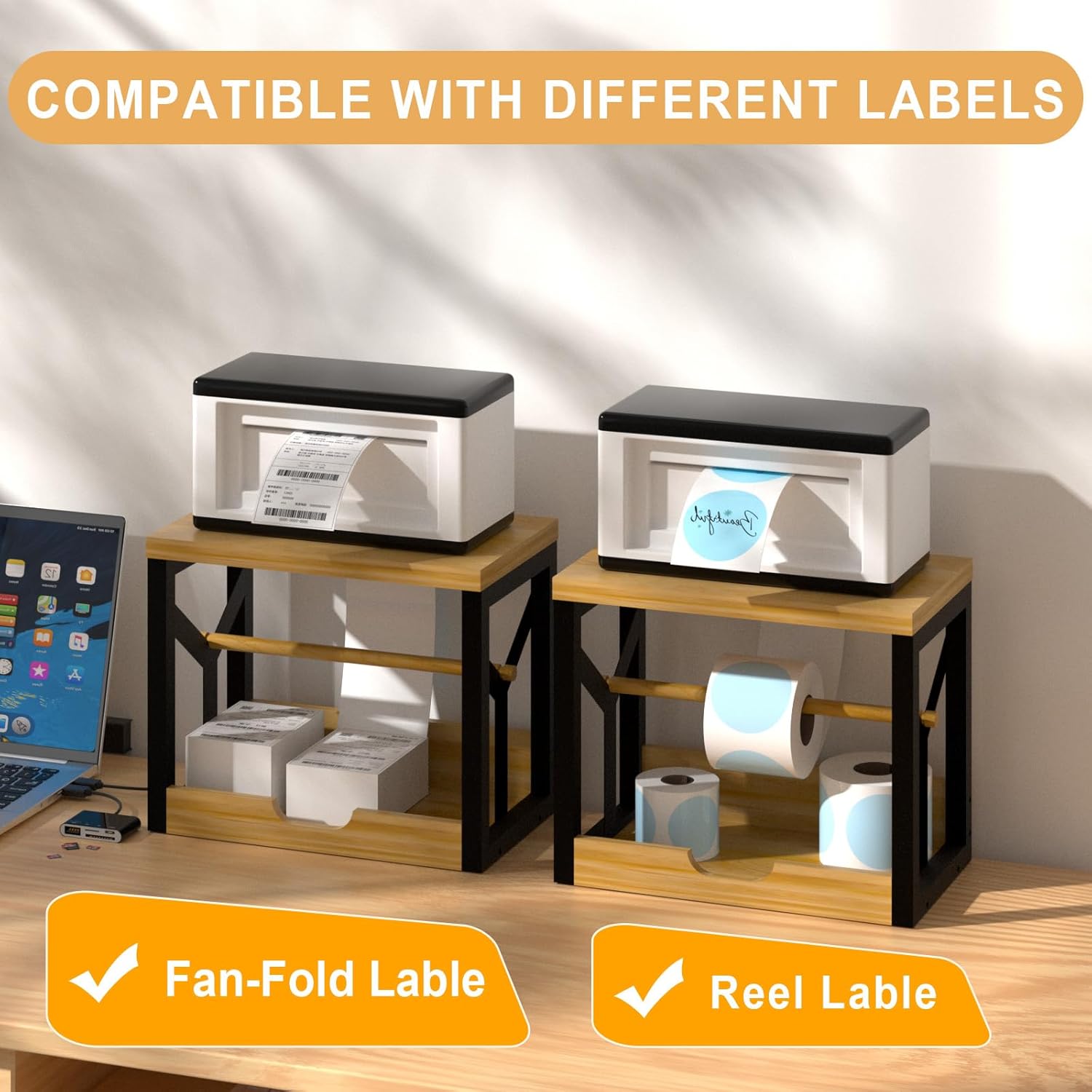 - ALL-IN-ONE LABEL HOLDER: This wooden label holders is a versatile accessory specifically designed for desktop thermal label printers. It combines the functions of storing label rolls and the printer. The bottom drawer offers extra space for office supplies, serving as a mini desktop storage station.