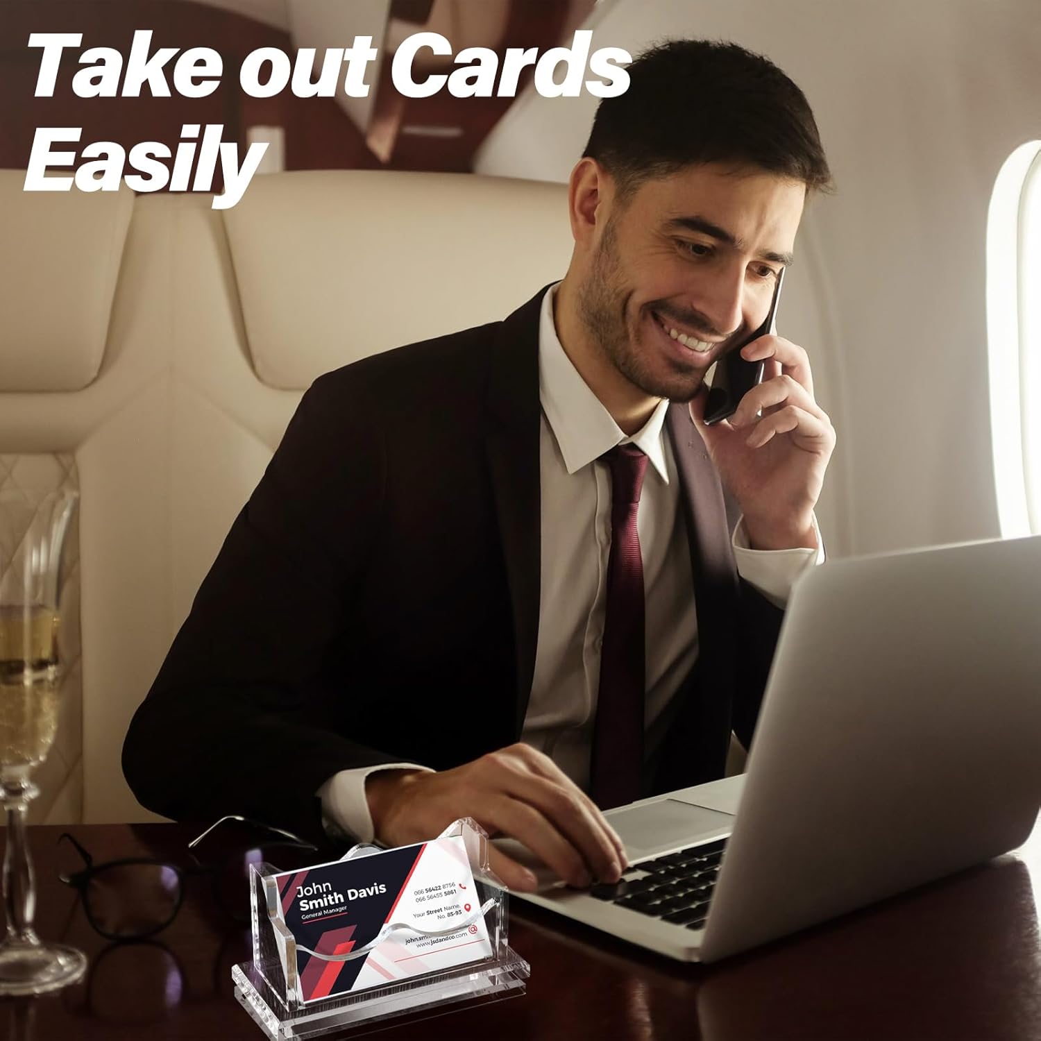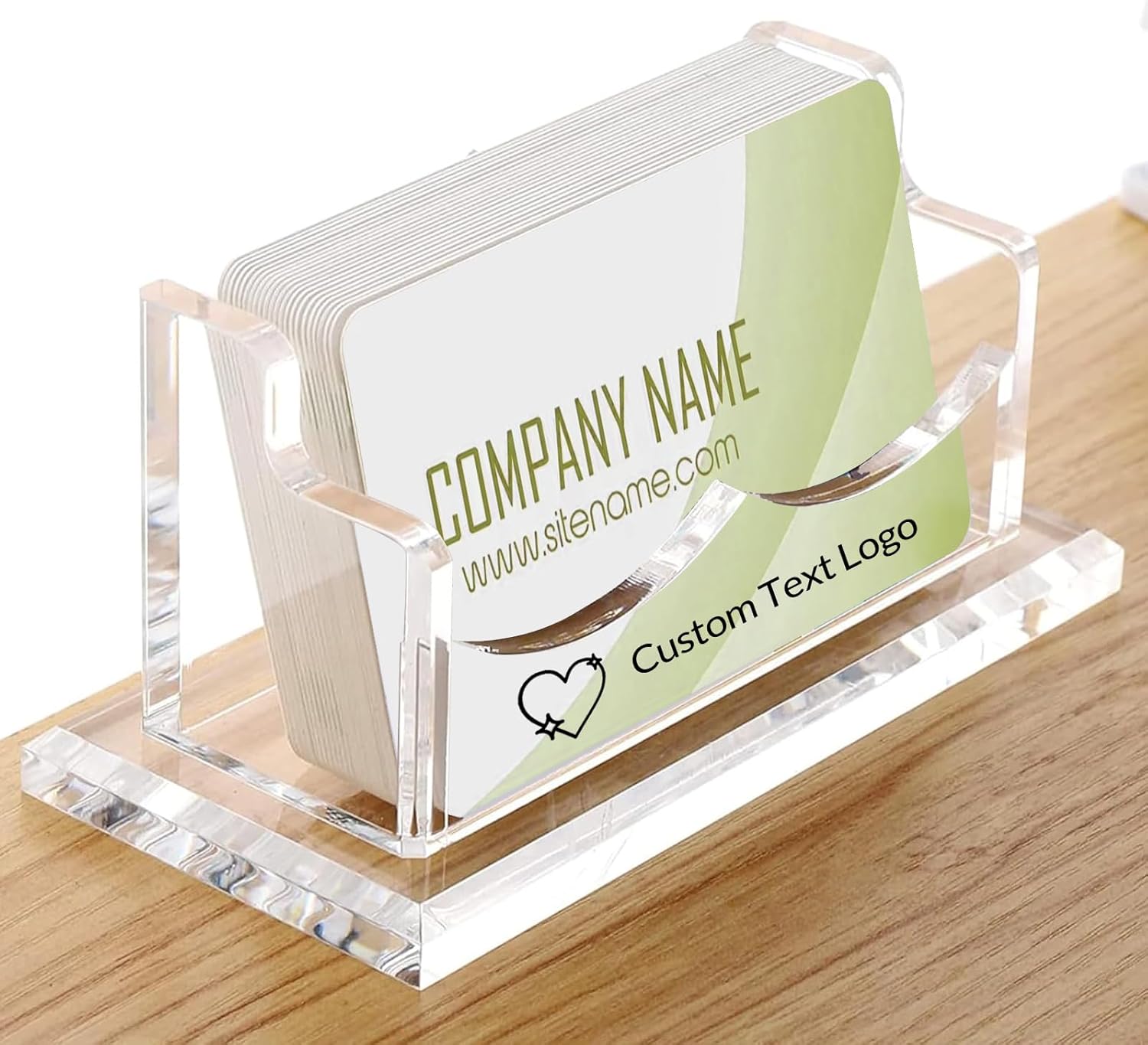 Custom Business Card Holder Desk-Personalized Engraved Wooden Business Card Case Holder, Customized Name Logo Business Card Display Gifts for Men Women (Acrylic-Horizontal)