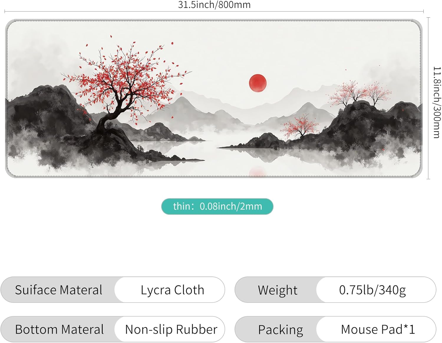 - Large Size - 31.5*11.8*0.08 inch(800*300*2mm)makes it provide larger area fits both for keyboard and mouse