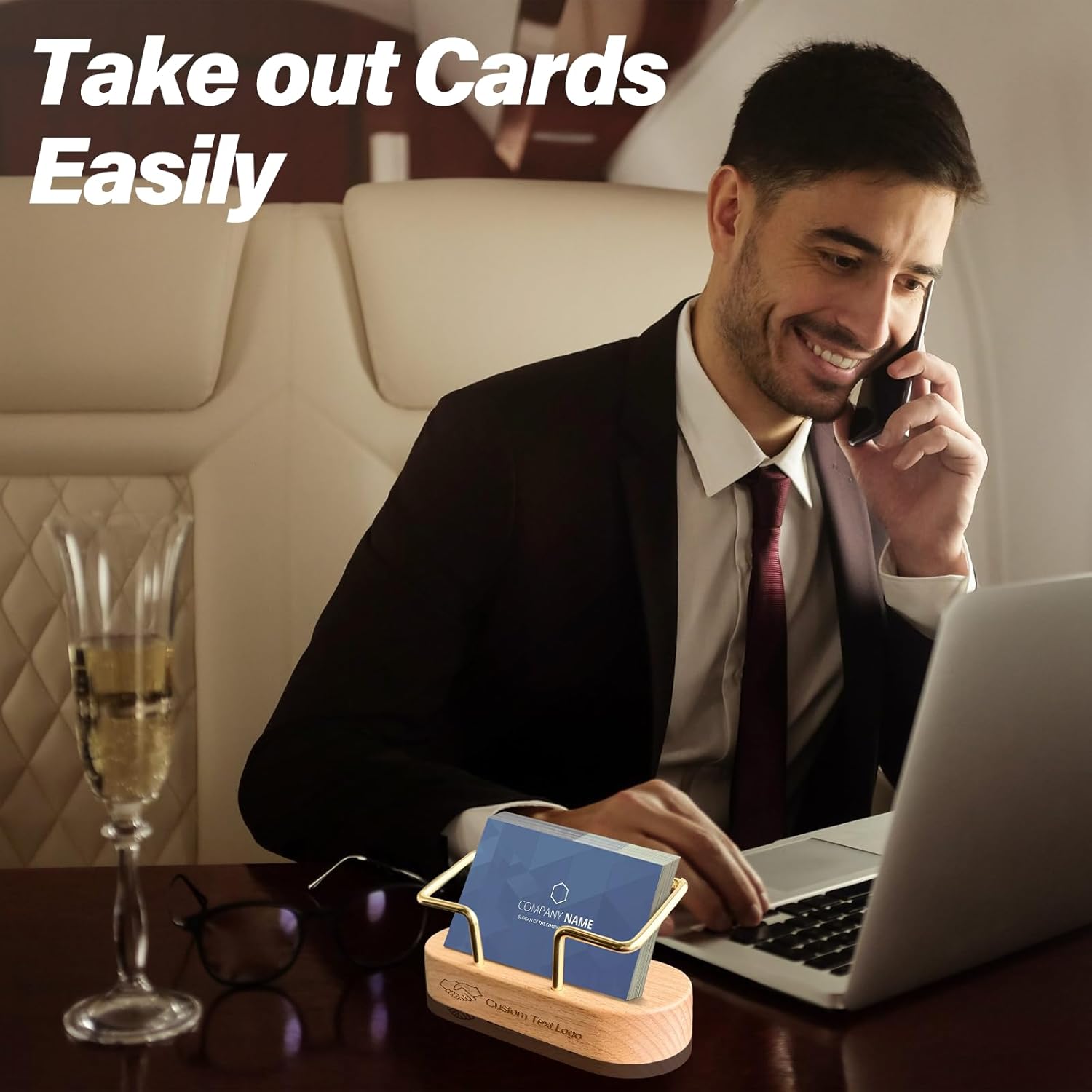 Custom Business Card Holder Desk-Personalized Engraved Wooden Business Card Case Holder, Customized Name Logo Business Card Display Gifts for Men Women (Style2-White)