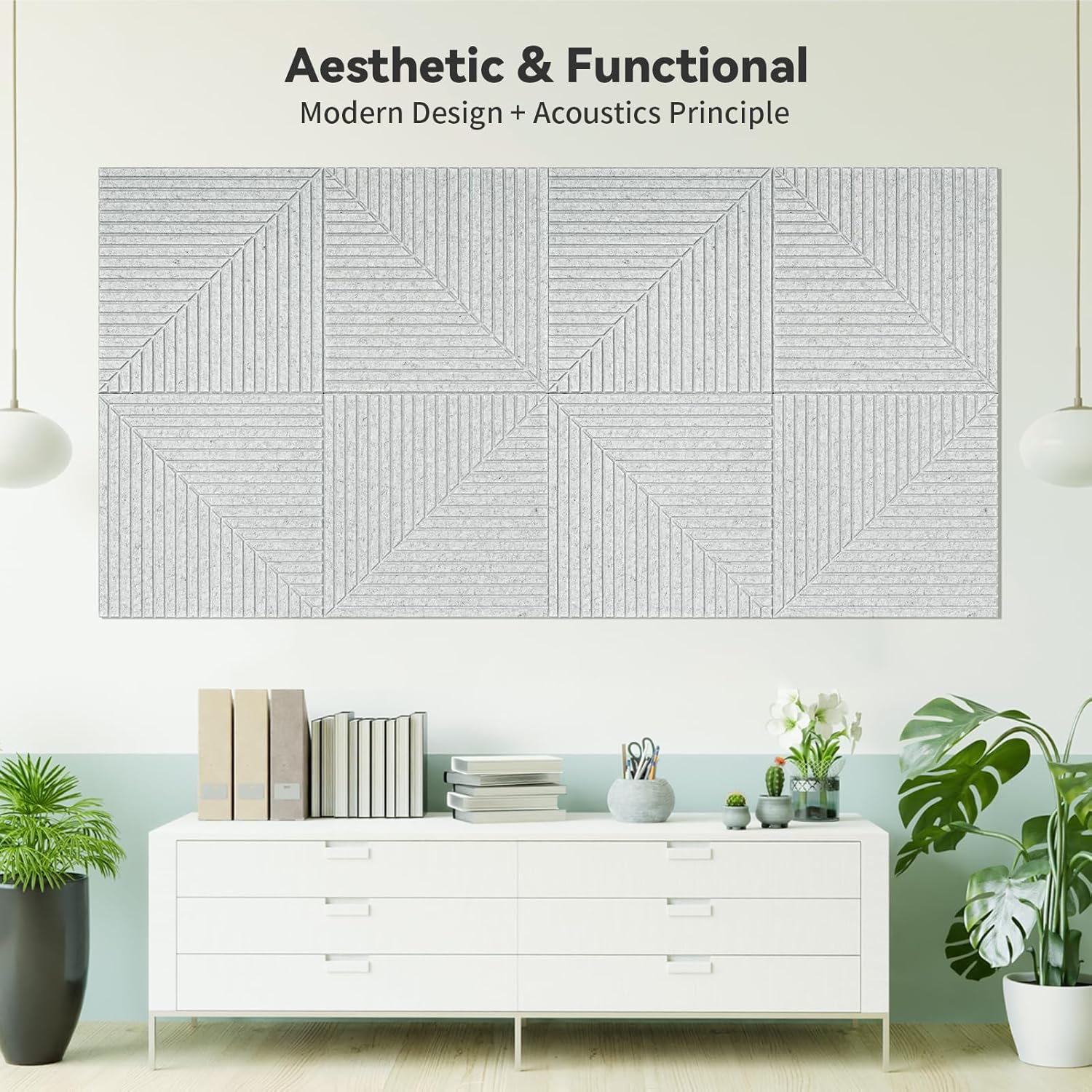 Art3d 6-Pack Self-Adhesive Acoustic Wall Panels for Home Décor, 24 x 24 Inch Soundproofing Panels for Office Studio Bedroom - High Noise Absorption Polyester Fiber, Gray