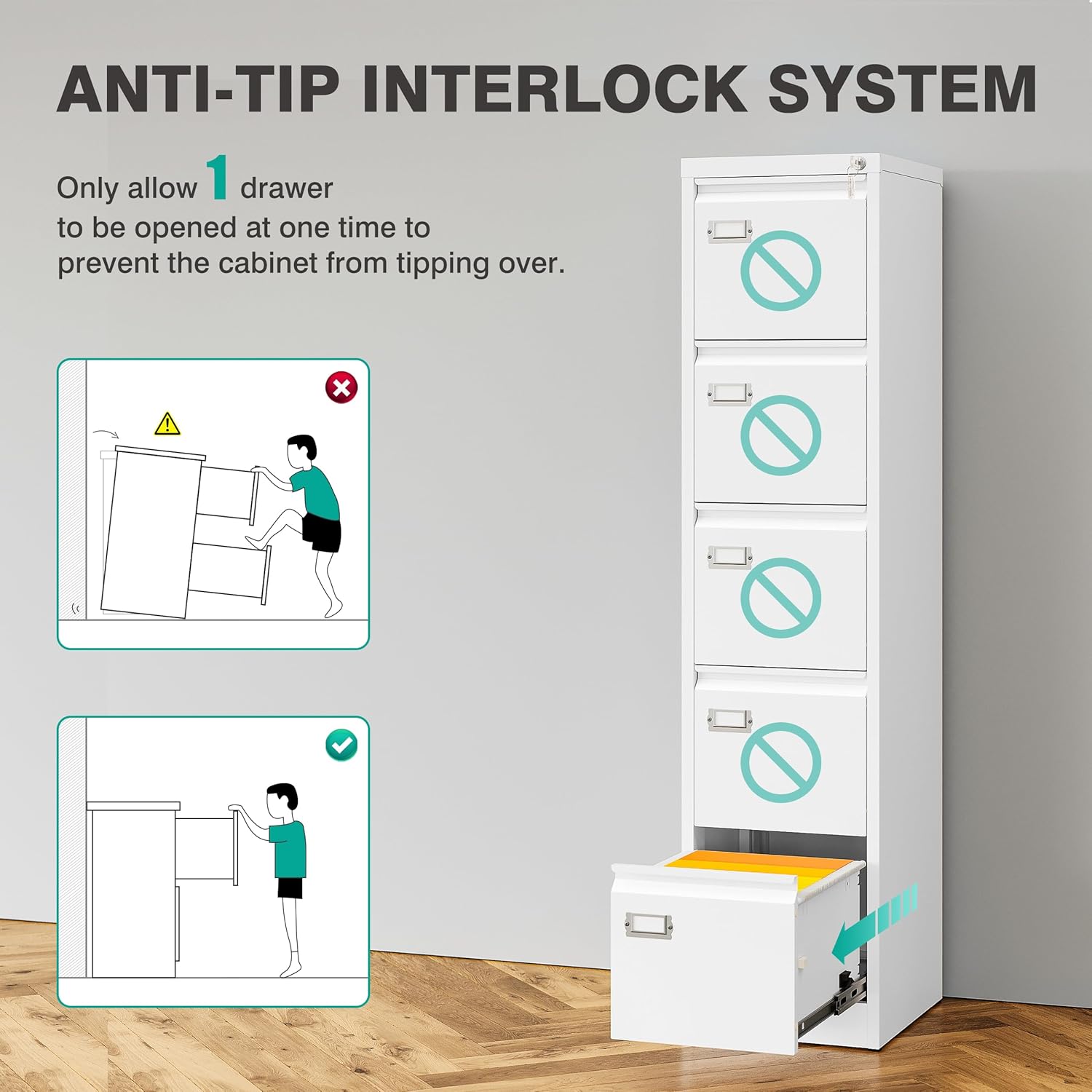 - Space-saving & Ample Storage Space: 15 inch wide metal file cabinet features deep and slim. 62 inch tall five drawers providing enough space to store all different size documents.It Fit A4,Legal,Letter Size File.