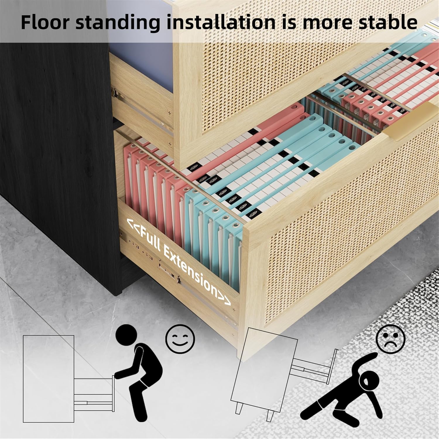 - 【Elegant Appearance Filing Cabinet】 Real Rattan design of the filing cabinet is beautiful, Simple line will be a good choice for your home, office, school, conference, etc. Wood lateral filing cabinet suitable for various interior decorations, and can also be used as home office storage cabinet or printer stand.Warm colors make your work environment less oppressive and more relaxed compared to black and white