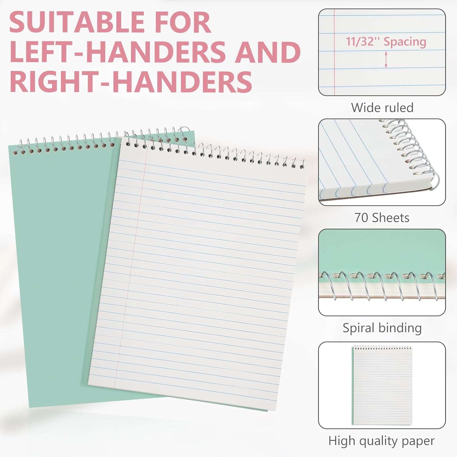 6 Pack 8.5 x 11'' Top Bound Office Steno Book Wide Ruled Double Sided Spiral Notebooks Reliable White Paper 70 Sheets/Pad Pastel Colors Covers for Writing School Notes(Bohemian Color)