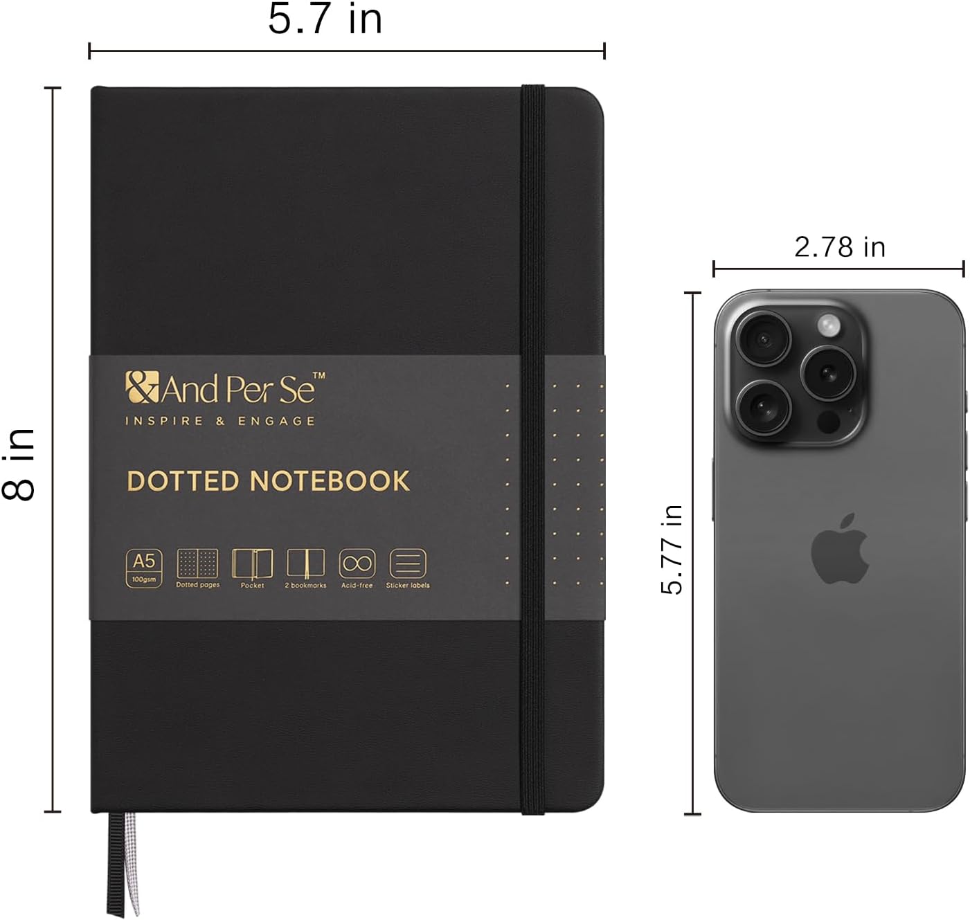 &And Per Se Dotted Journal Notebook (10 packs), A5 Hardcover Leather Bullet Dotted Journal, 160 Pages 100GSM Thick Paper, 3 Sheets of Stickers Included - 5.7'' x 8'' (Black)