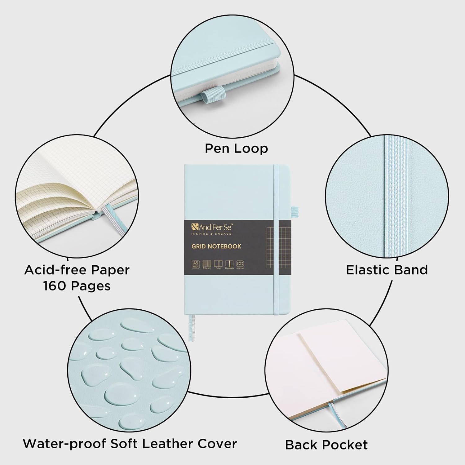 &And Per Se Graph Journal Notebook, 160 Pages, 5.7 x 8 inches College Ruled Thick Paper Notebook Journals for Writing, Grid Hardcover Notebook(1 Pack, cyan)