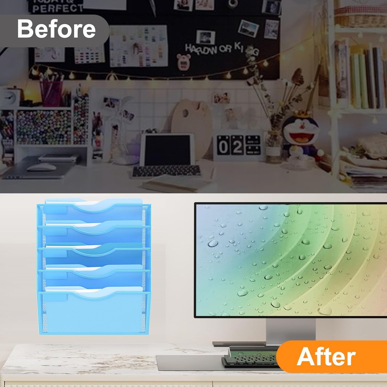Kuntine.B Wall File Organizer Office Hanging Magazine Holder Wall File Organizer for Office Home (Blue, 5 Tier)