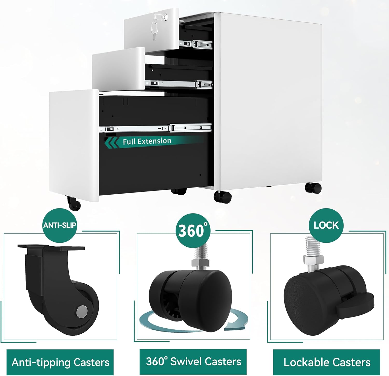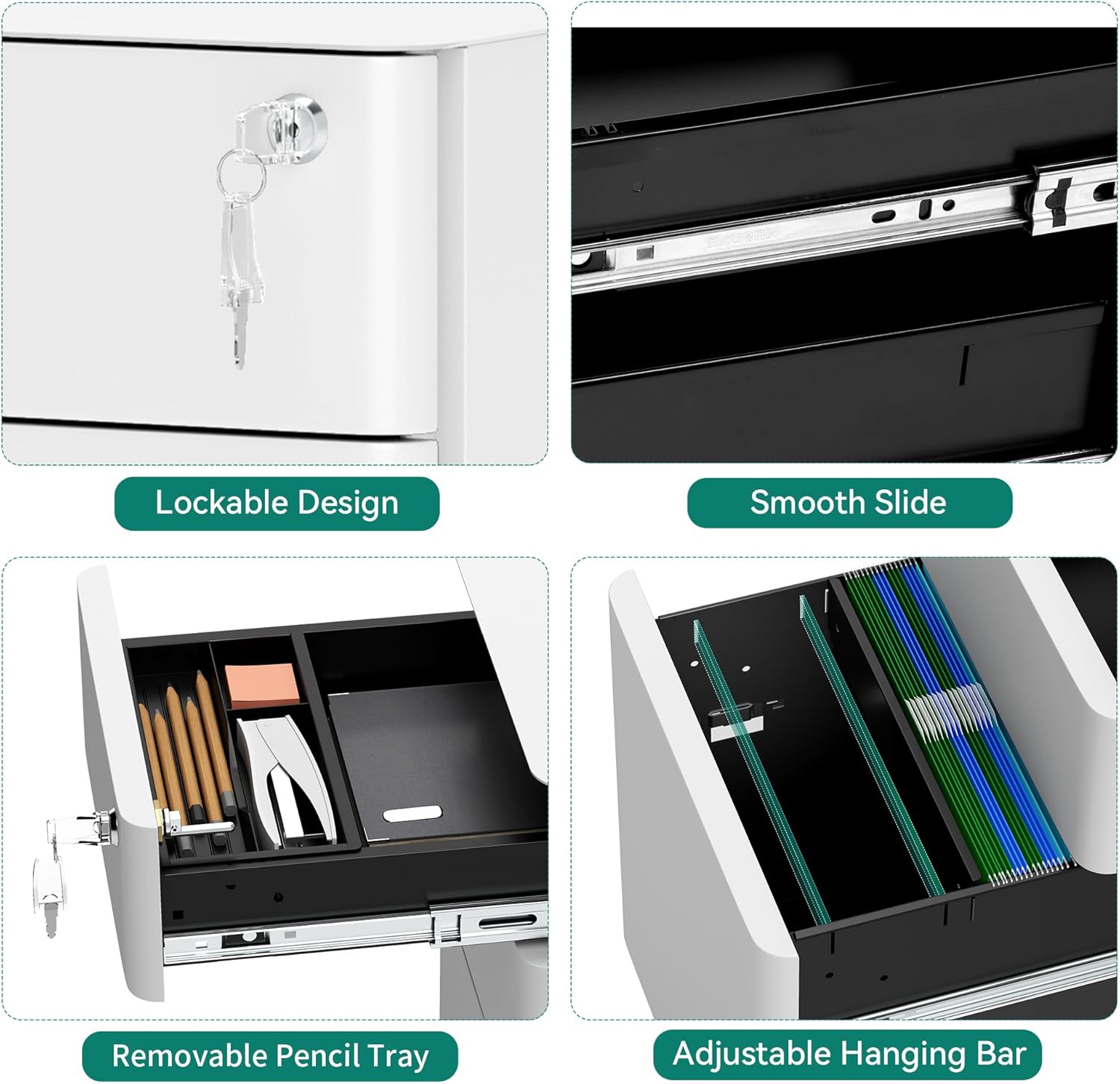 - Secure Locking & Solid Stability: Our white file cabinet prioritizes stability and safety; Crafted from 0.7mm steel plate, the entire cabinet offers long-lasting durbility; Comes with a key to lock the drawers for added security