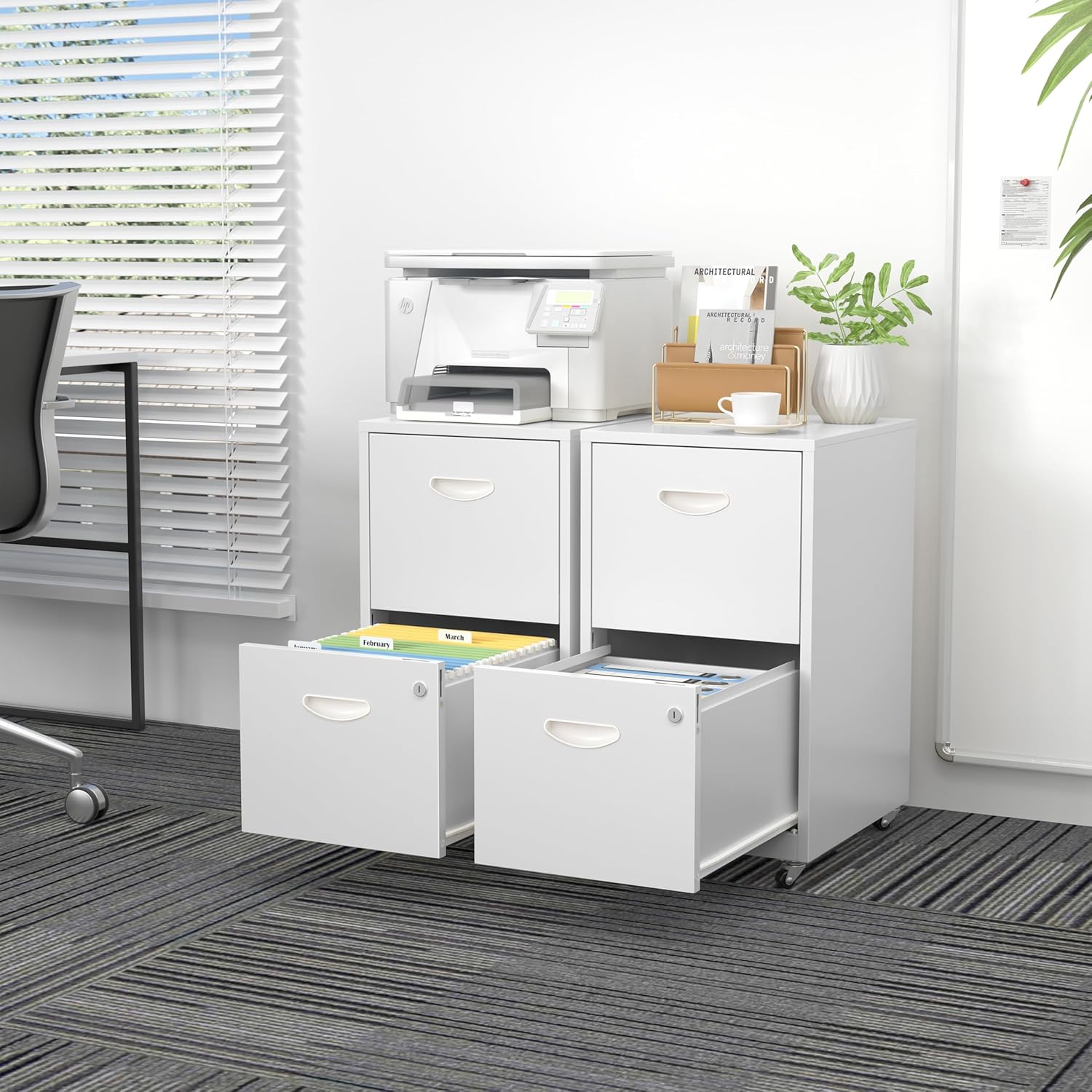 - 【Spacious Storage Space】The 2 drawer file cabinet on wheels size: 18"W X 15 "D X 26.8 "H,the filing cabinets has two large and deep drawers,It can store office files, letters and books, making your office supplies well-organized,This file cabinet on wheels is easy to move and can be used flexibly in the office