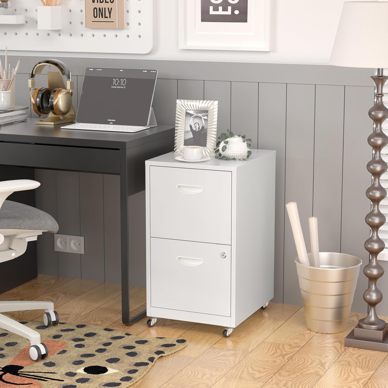 2 Drawer File Cabinet with Lock,White Rolling File Cabinet for Home Office, Metal Small Mobile Filing Cabinets on Wheels for Hanging Letter