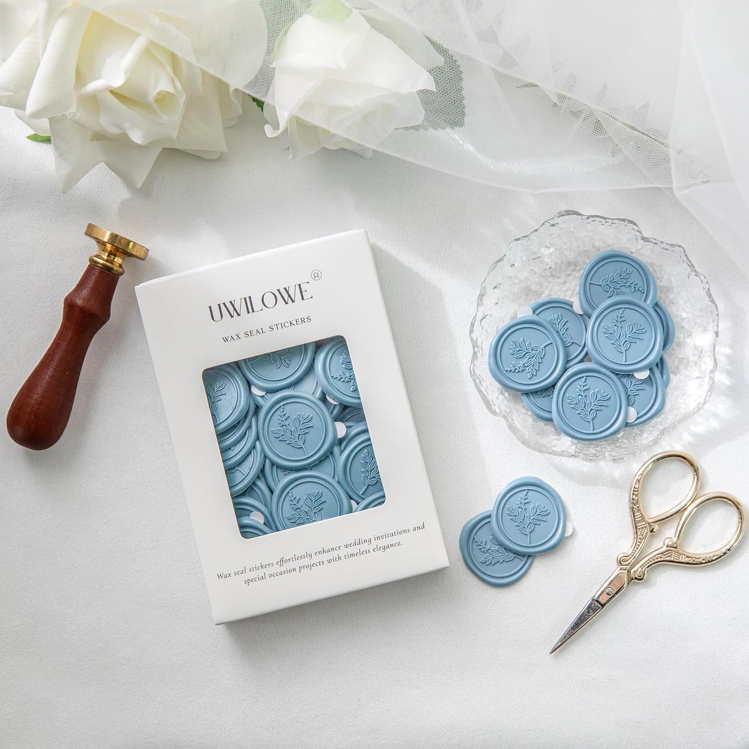 60 Pcs Dusty Blue Wax Seal Stickers, Wedding Invitation Accessories Envelope Stickers - Peferct for Wedding Accessories, Gift Box Craft Wrapping, Christmas Cards Envelope Seals