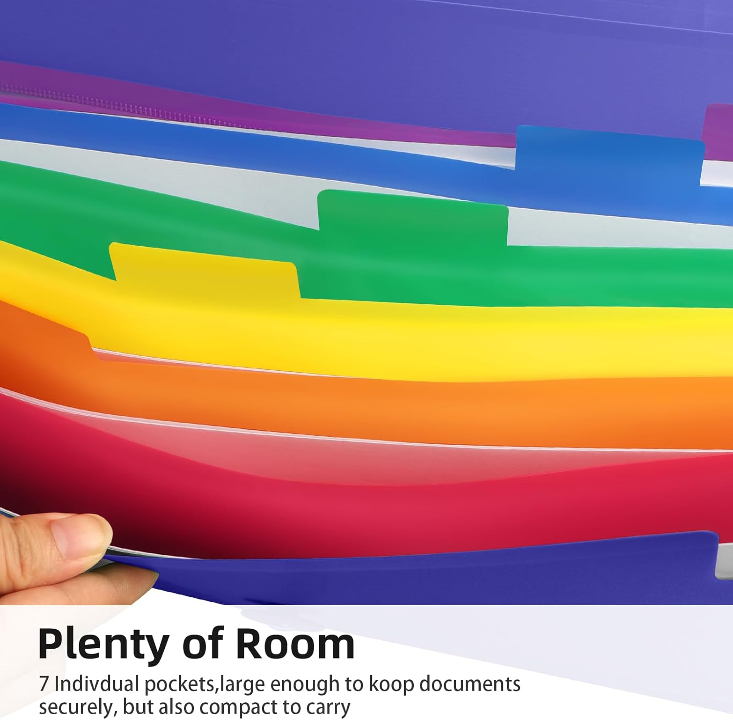 5 Pack 7 Pocket Accordian File Organizer, Expanding File Folder with Labels, Plastic Expandable File Folder for Documents Letter Size A4 Papers, Ideal for Home, Office Supplies, College Essentials