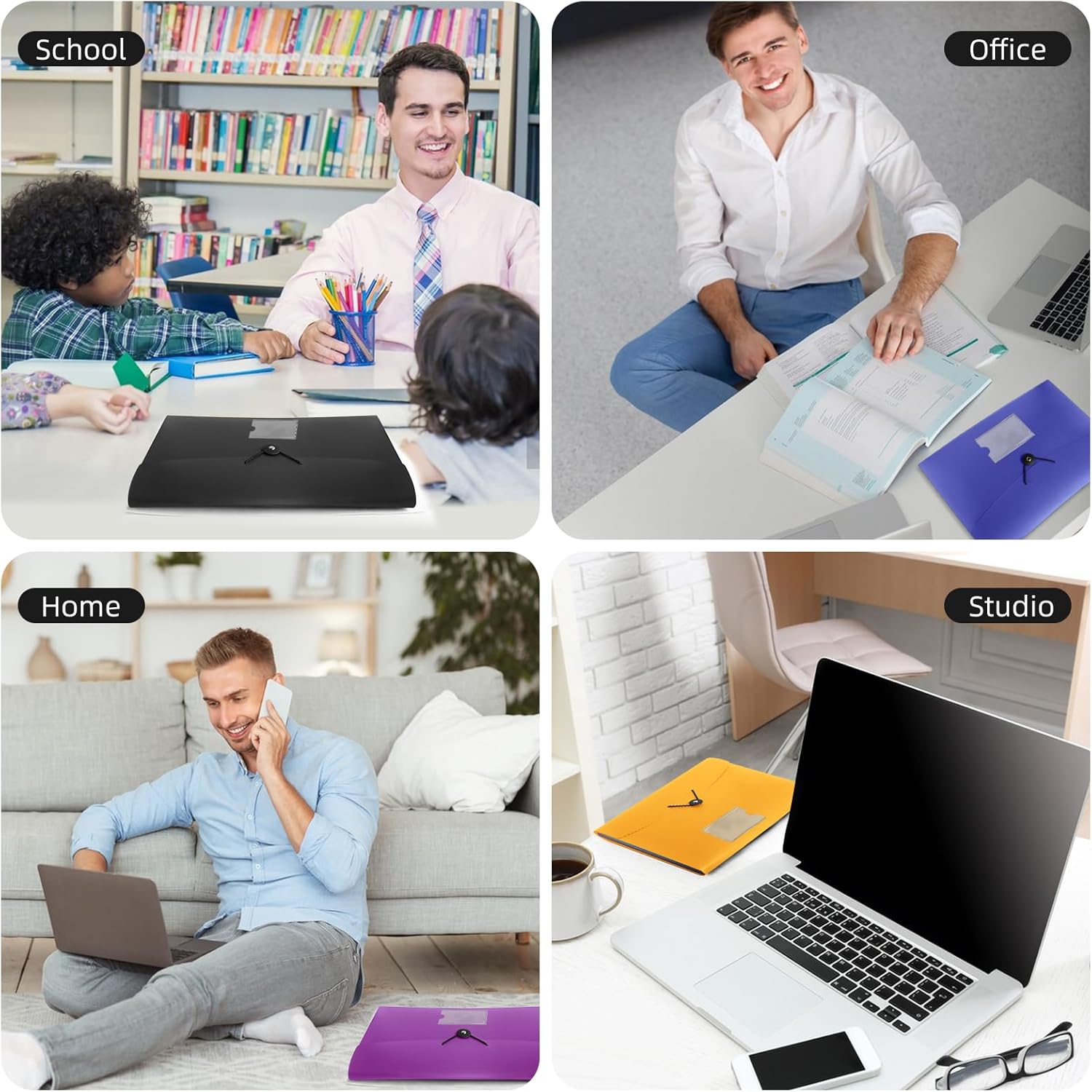 - ELASTIC BUCKLE DESIGN: The expanding file folder features a flap with elastic cord closure, protecting documents safe and firmly in place during transport