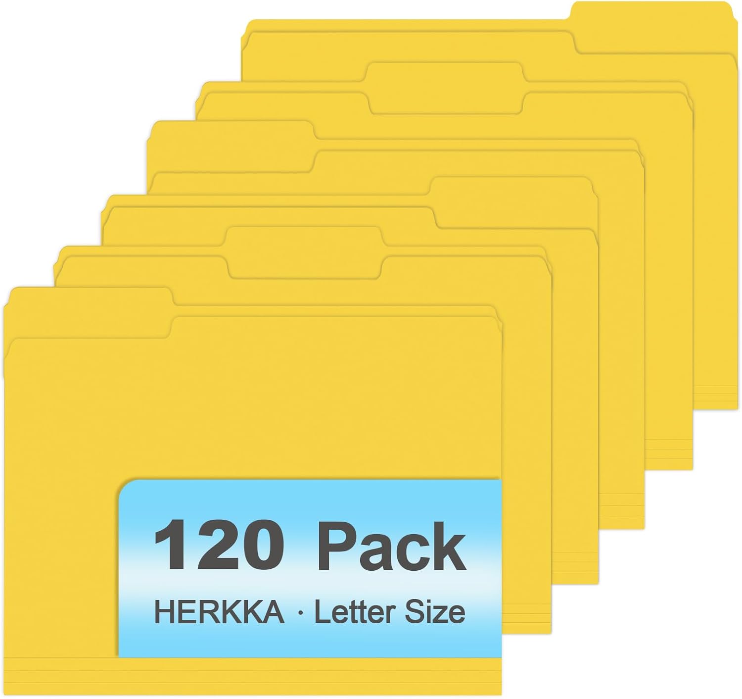 File Folder, HERKKA 120 Pack 1/3 Cut Tab File Folders, File Folders Great for Organizing and Filing, Letter Size, Yellow