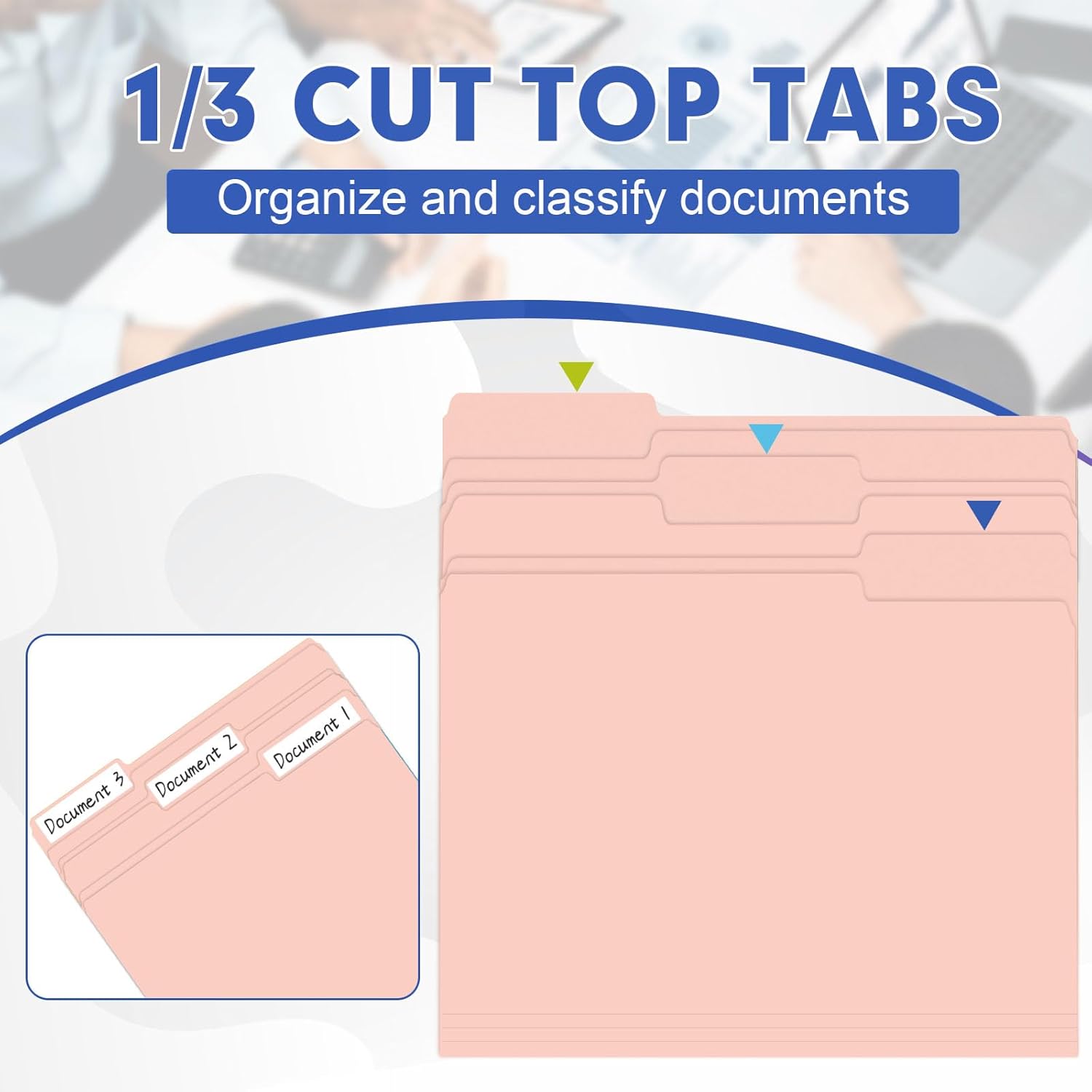 - 1/3 CUT TOP TABS: The 3 tabs for easy document retrieval, with assorted positions to customize covers for different topics. Ideal for organizing papers, work files, and contracts.