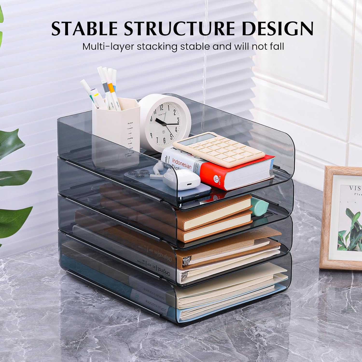 - Stylish and Sturdy Desk Organizer - Our paper letter tray is made of thick premium PET material, which features durable and sturdy to use for a long time. The transparent office storage looks very clean and sleek, and it can provide a clean/organized look of your home and office desk for you