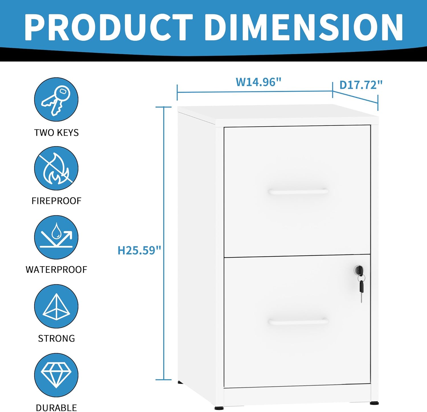 - 【Strong & Durable Construction】The 2 drawer metal vertical filing storage cabinet is made of high-quality cold-rolled steel sheet, which is sturdy and not easily deformed, the maximum load of each drawer is about 55LBS. Perfect for placing printers or other devices on top without worry.