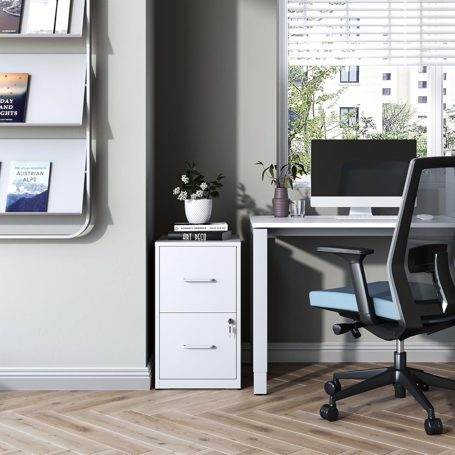 2 Drawer File Cabinet with Lock, Steel Vertical Filing Cabinets for Home Office, Small Metal Storage Cabinet for Hanging Letter Size File Folders, Assembly Required(White)