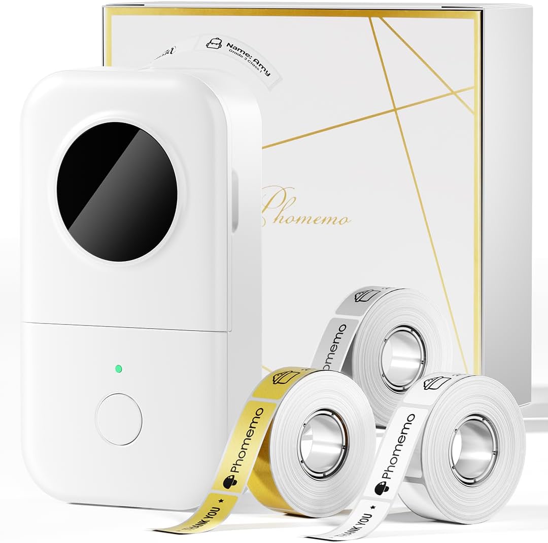 - Item Include: D30 Label Laker with 3 Tapes - 1 White Tape + 1 Gold Tape and 1 Clear Tape; The Phomemo D30 Bluetooth label maker supports continuous label tapes and labels in fixed length.