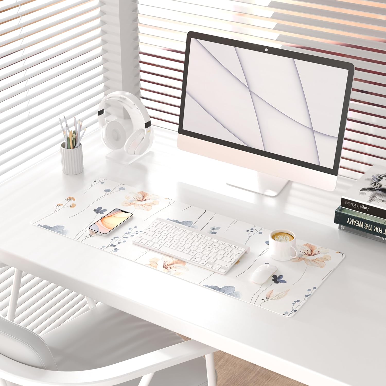 QIYI Large Mouse Pad, Floral Desk Mat for Desktop, Women Girls PU Leather Waterproof Gaming Mousepad, Computer Laptop Flower Desk Accessories Protector Writing Pad for School Office Home 31.5" x 11.8"