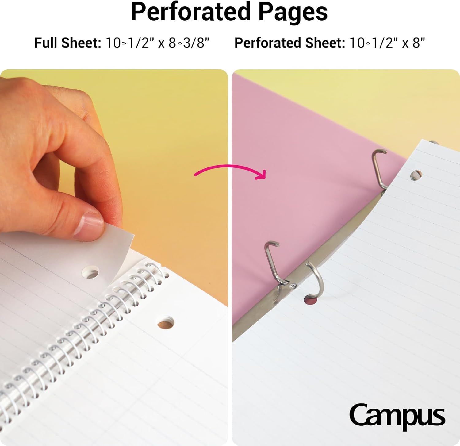 - Perforated Pages: The perforated pages of these college notebooks make it easy to tear out sheets cleanly and neatly. Whether you need to hand in an assignment or share your notes, the perforations ensure smooth removal. In addition, you can easily transfer the paper to any 3-hole binder because each page is designed with 3 holes. These are ideal lined notebooks for school and work.