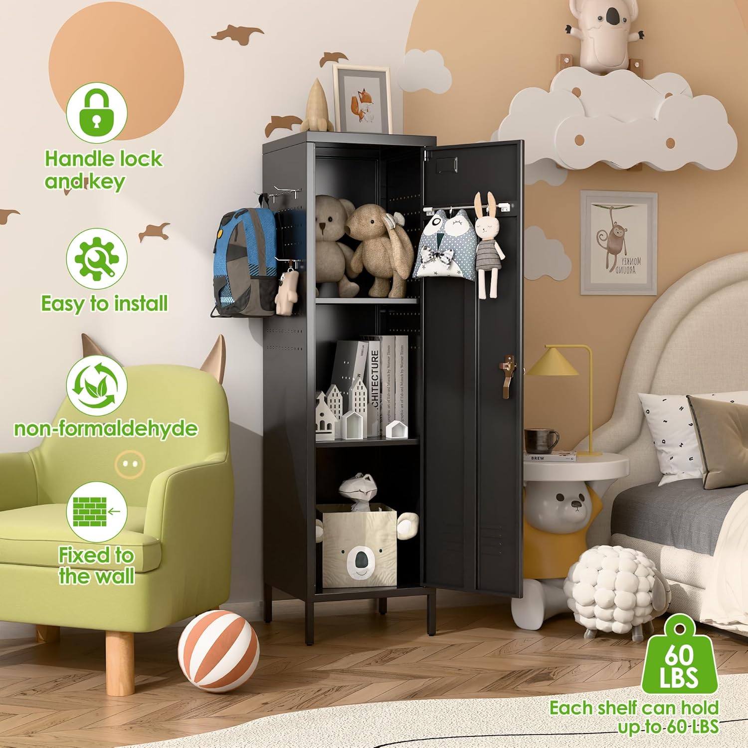 - 【Multipurpose】This lockable metal locker provides versatility and practicality for your storage needs. Perfect for offices,homes, schools, hospitals,factories,gyms or anywhere you need safe storage space.