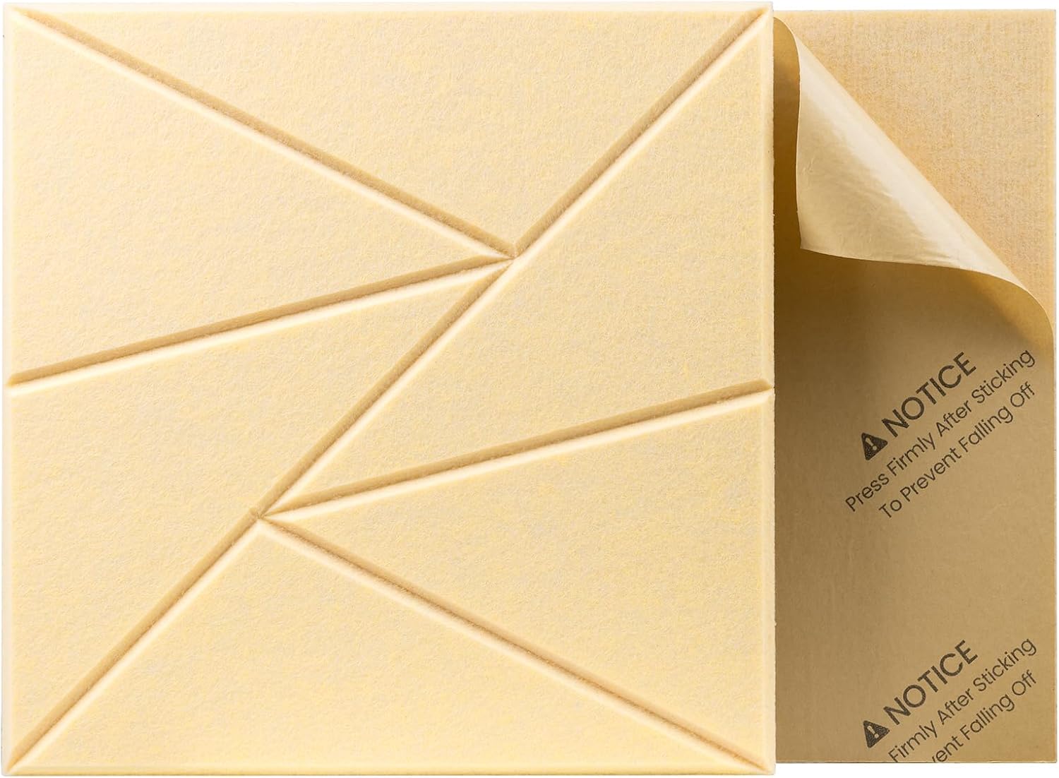 - Perfect for wall decoration - Be different from other acoustic panels,We have not only upgraded their acoustic performance,but aslo their appearance.Adopt beveled edge and multi-line design.They can be DIY into pinwheel patterns and multi-ring patterns.They absorb unnecessary sound while playing a good role in decorating the wall.Perfect for professional studios, video blogger,game room, podcasting, school,home theaters,offices,etc