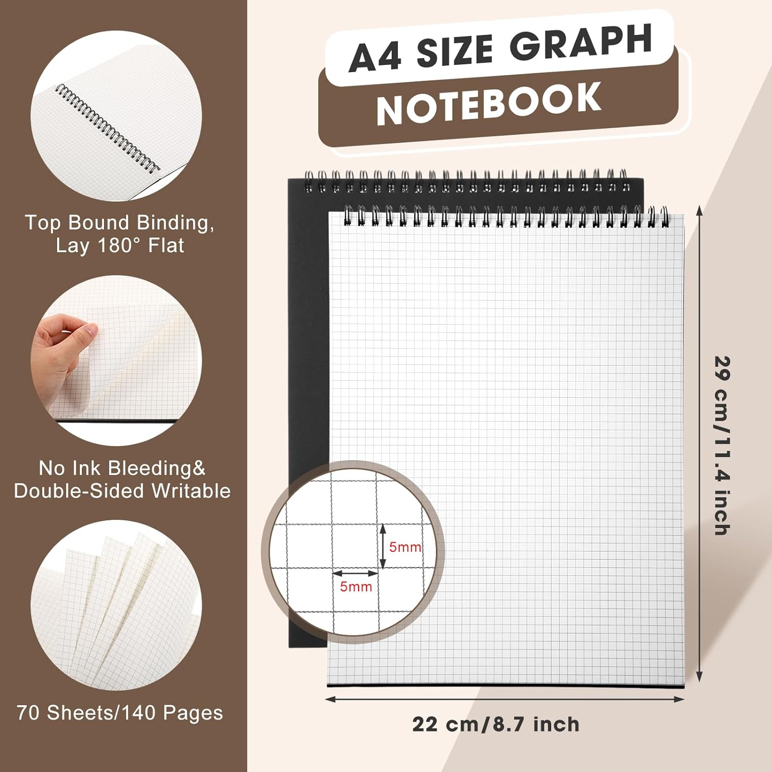 - What You Will Get: you will receive 1 pack graph paper spiral notebooks, each size is about 8.7 x 11.4 inches/ 22 x 29 cm, 140 pages/ 70 sheets per notebook; These notebooks slip easily into a backpack and are easy to carry along; They are suitable for office, business, school, and are ideal gifts for friend, family, or business colleagues