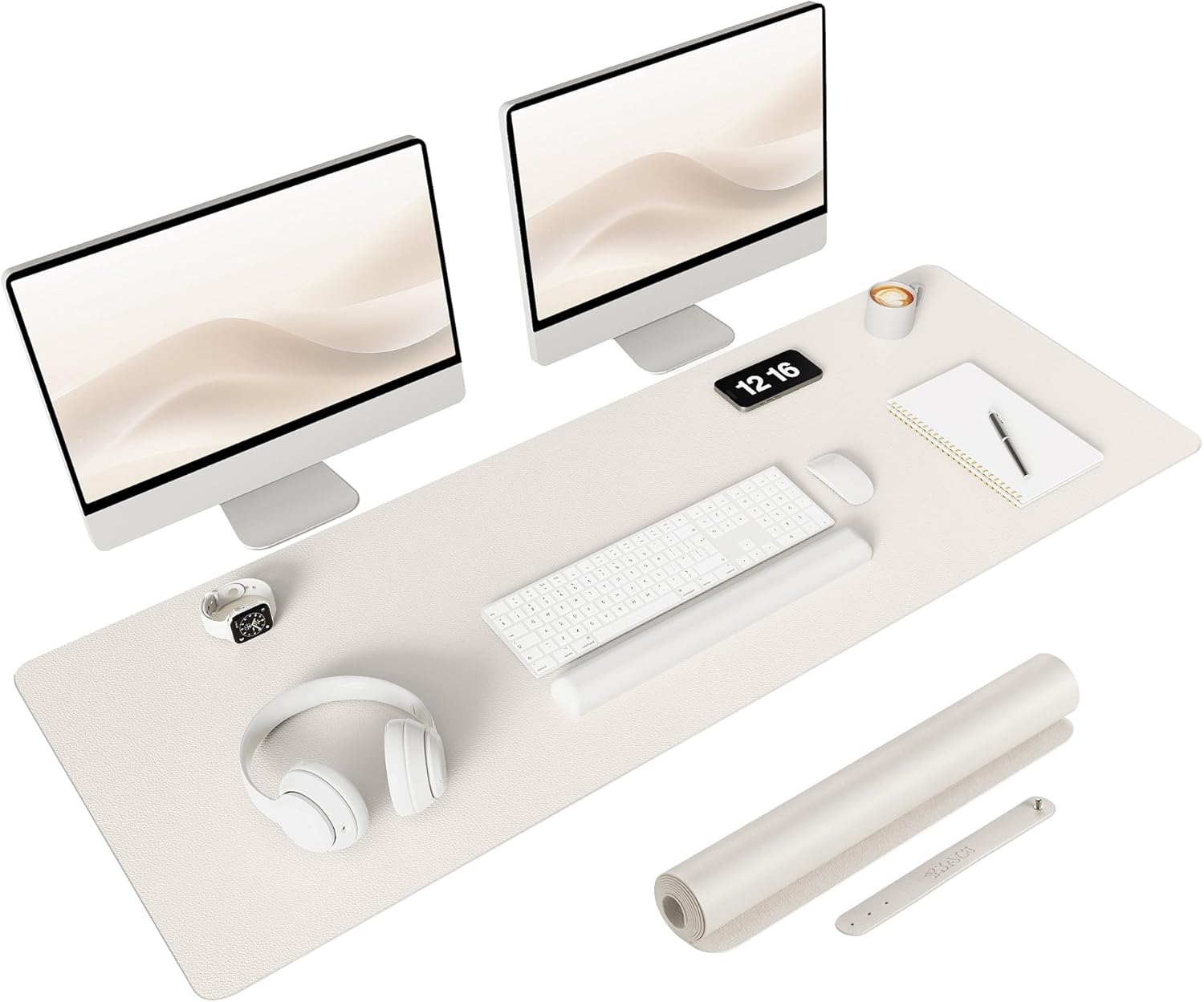 YSAGi Non-Slip Leather Desk Pad Long Size, Waterproof Laptop Computer Desk Keyboard Mat, Table Protector Blotter Mat, Large Mouse Pad for Office/Work/Home/Decor(Apricot Gray, 47" x 17")