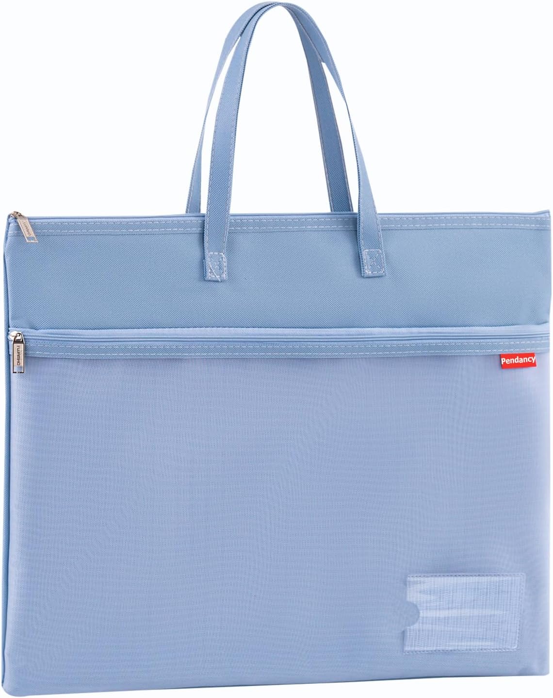 Pendancy Mesh Zipper Pouch A4 Size, Large Double Pocket Waterproof File Bag with Handle, 11x13.8 in Foldable Document Storage for Puzzle Project/Cross Stitch/Travel/Office(Advanced Blue)