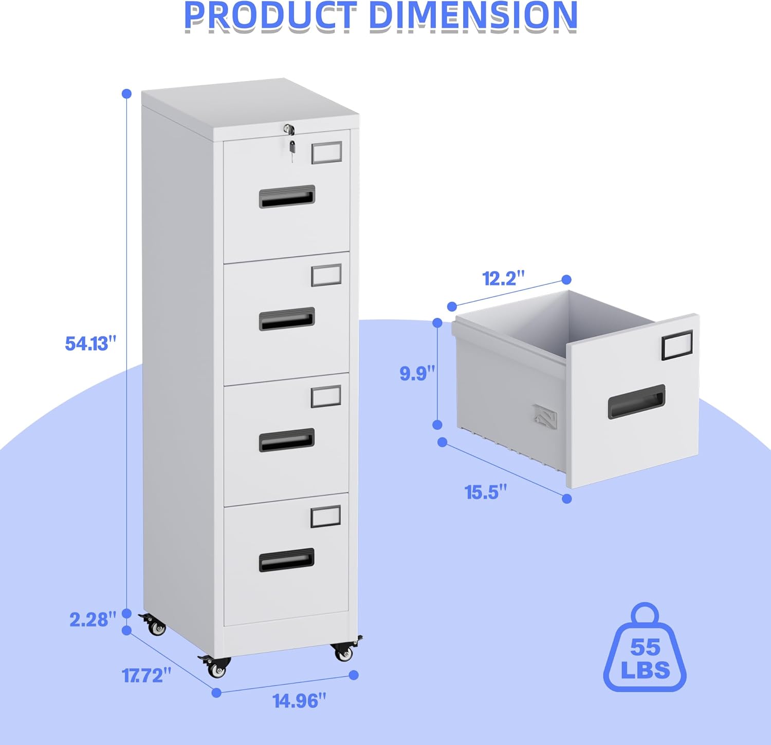 - [Full Extension Drawer] The 4 drawer file cabinet with lock silent rails of the steel file cabinet can be open and close fully, making it easier to get all folders even at the back of the drawer