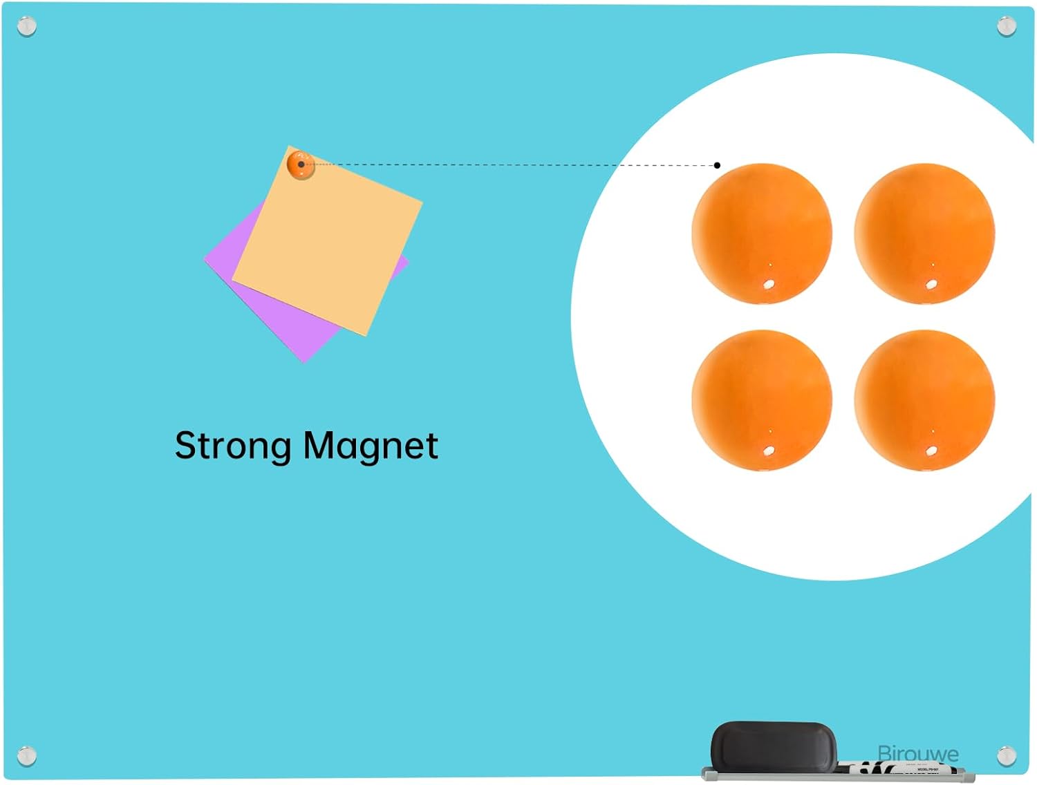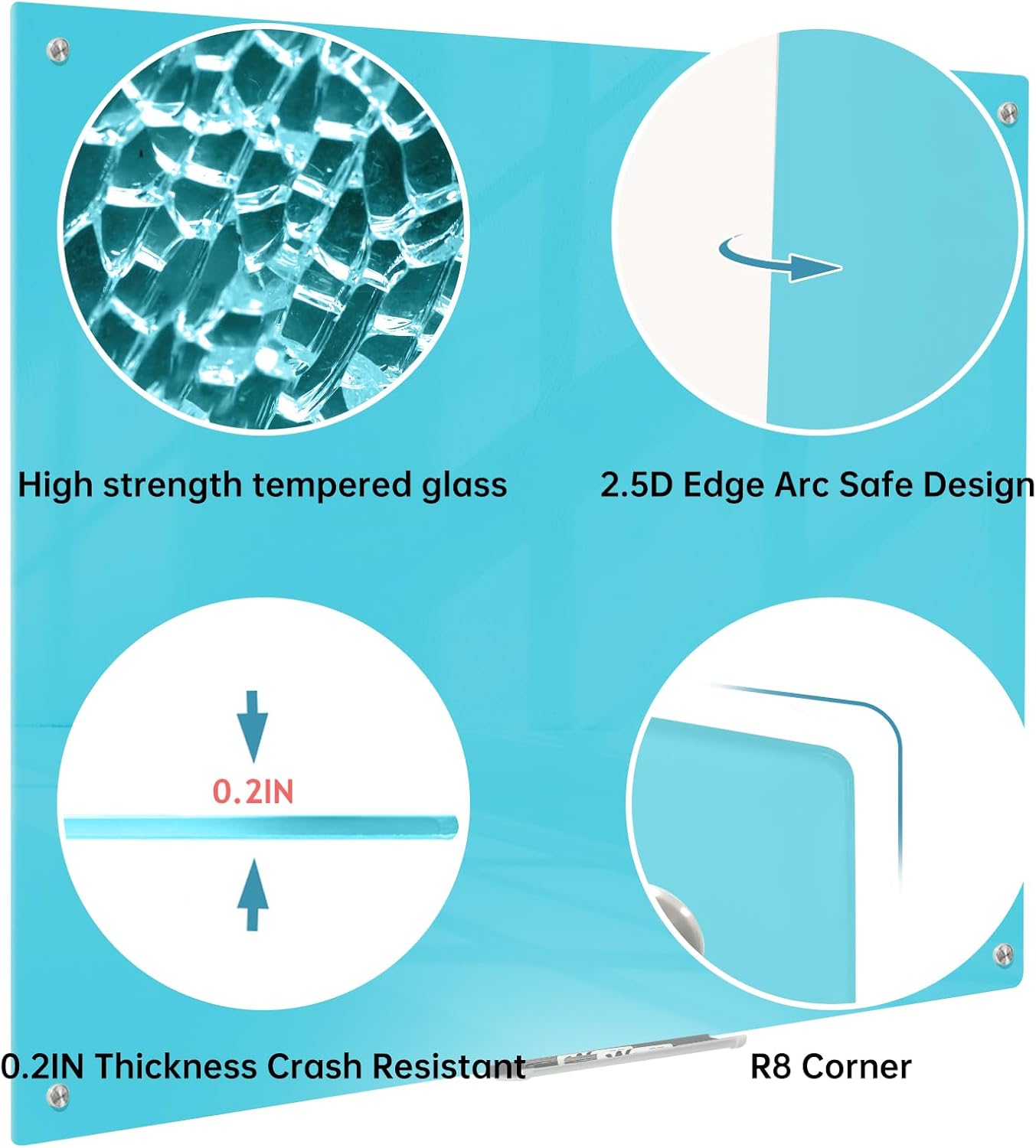 Magnetic Glass Dry Erase Board - White Board 48 x 36 Inch Wall Mounted Glass Whiteboard, Large Frameless Glass White Board for Wall Office, Home & School, Blue
