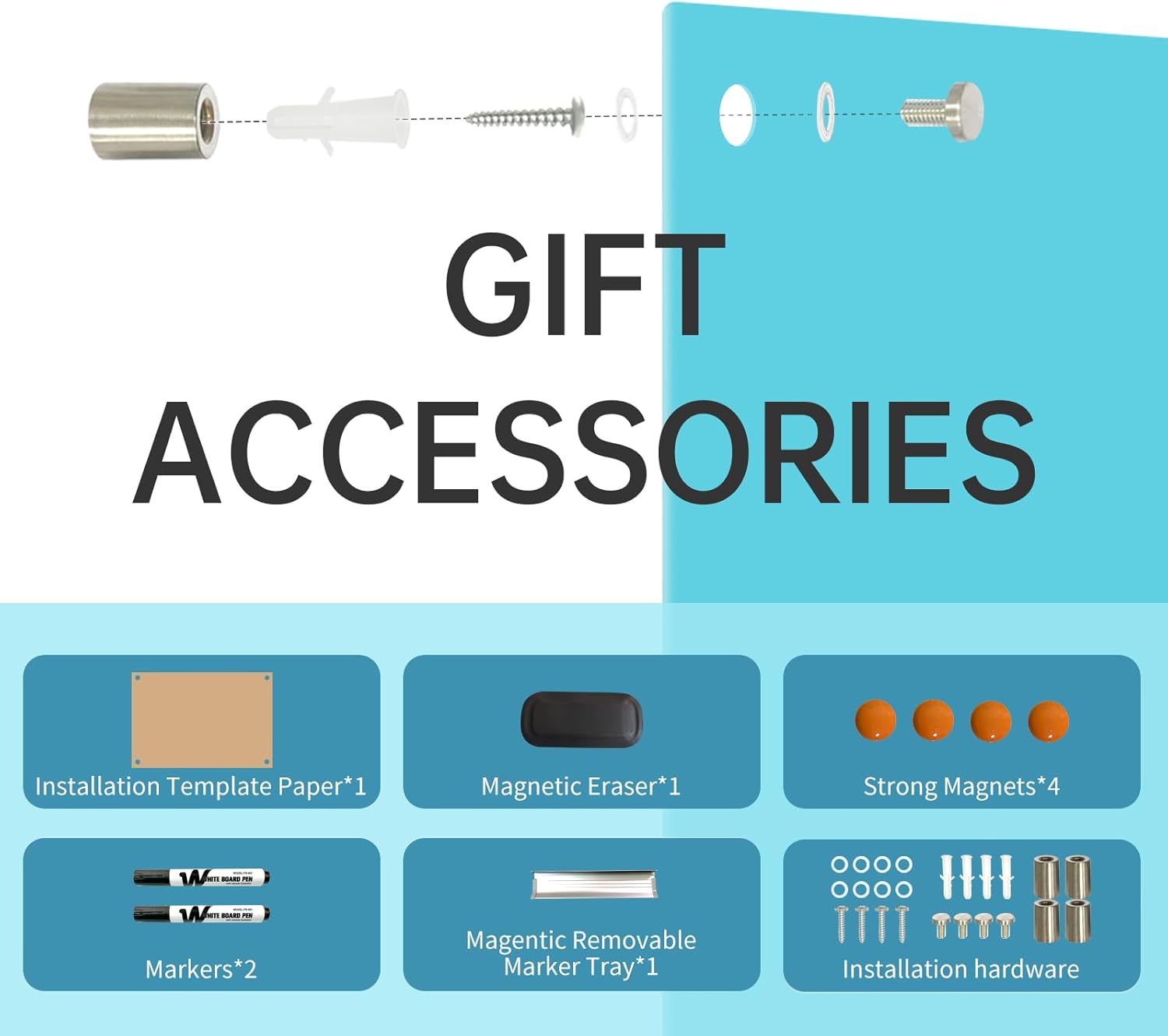 - Easy to Install: Glass Whiteboard Magnetic Dry Erase White Board is easy to install. Through the assembly instructions provided by us, you can easily install the whiteboard vertically or horizontally on the wall.